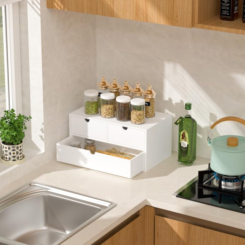 - 【Storage and Multi-function】 Dimension: 12.99” x 6.6” x6.29”(L*W*H). The Drawer Organzier can store all kinds of documents, tools, accessories and bills of your desk. You can put this desktop organizer with drawers in the office, study, dresser, bathroom,countertop,etc.