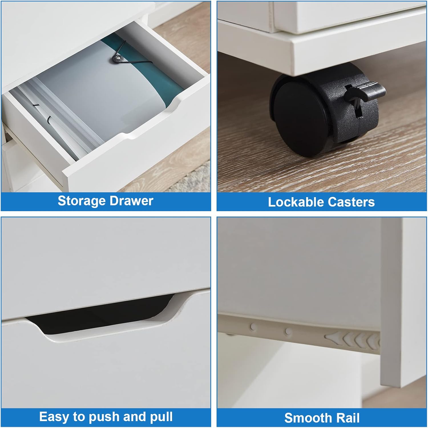Farini 3-Drawer Vertical Filing Cabinet Rolling Wood Mobile File Cabinets Under Desk for Home Office with Casters (White, Non-Assembled)