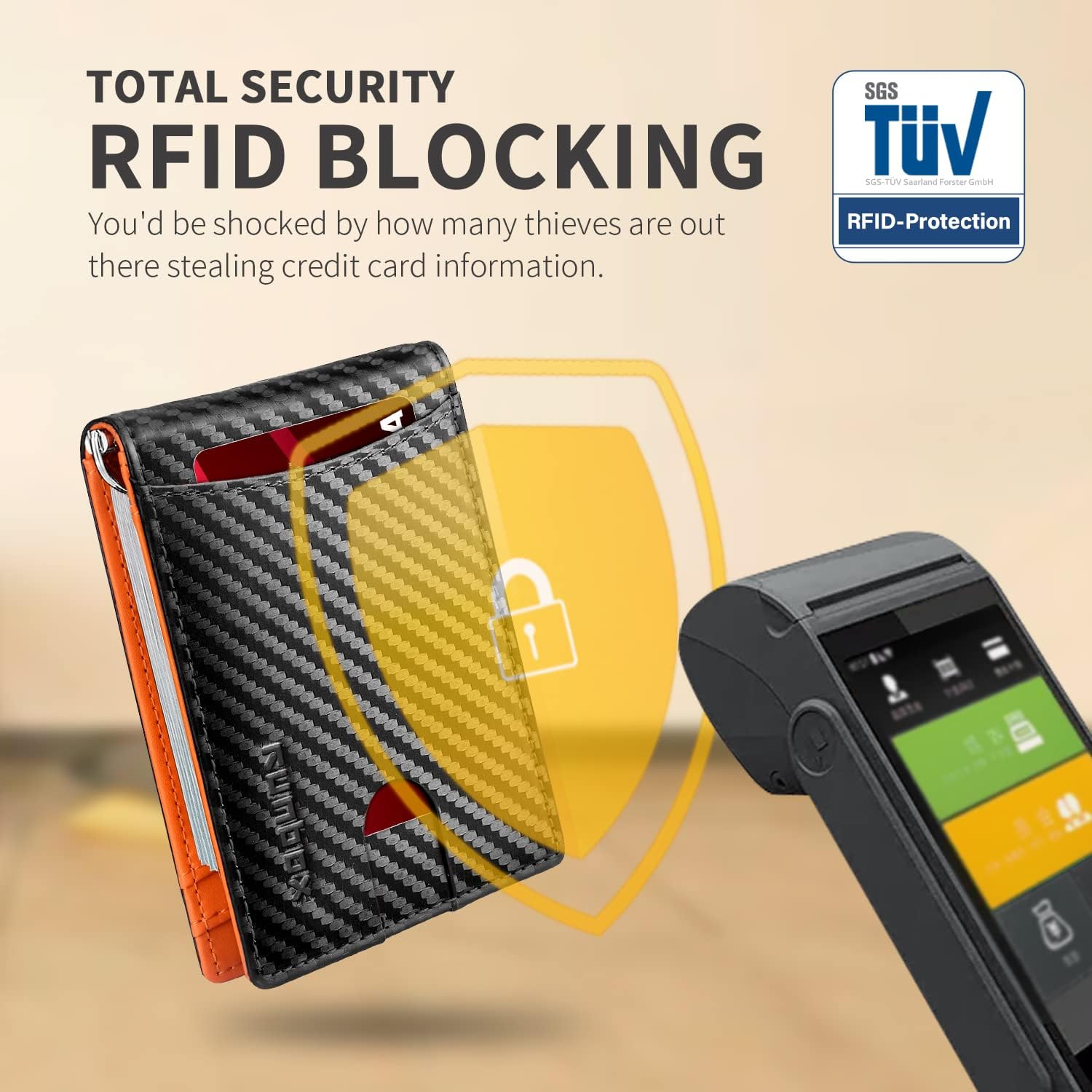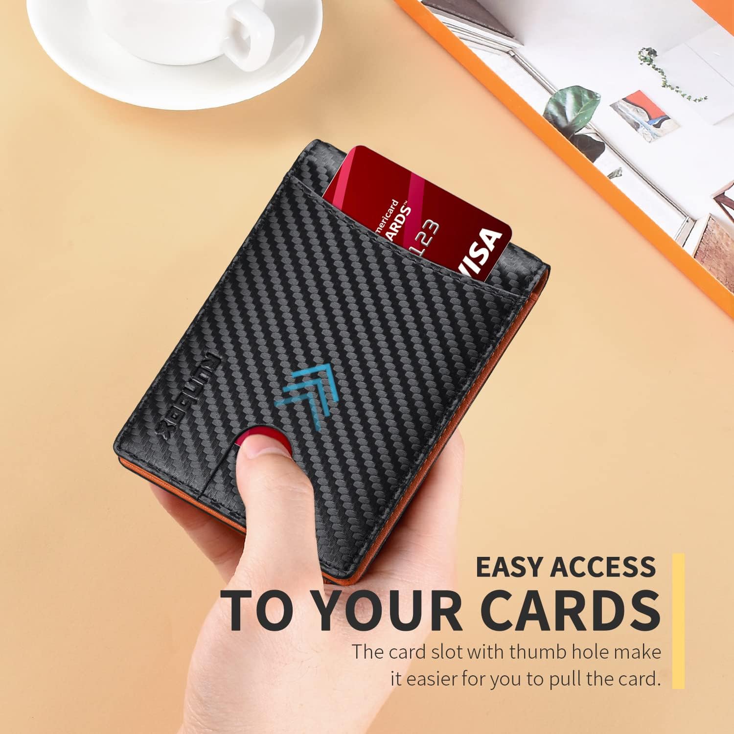 Slim Money Clip Wallets for Men RFID Blocking 11 Card Holder Minimalist Small Thin Carbon Leather Bifold Mens Front Pocket Wallet Gift Box