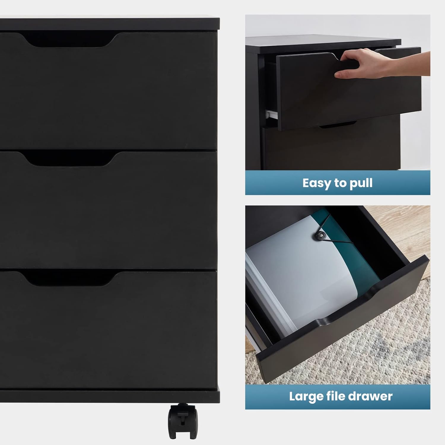 Farini Mobile File Cabinet for Home Office, 3 Drawer Chest Wood, Drawers Unit for Under Desk, Storage Drawers Cabinet Black