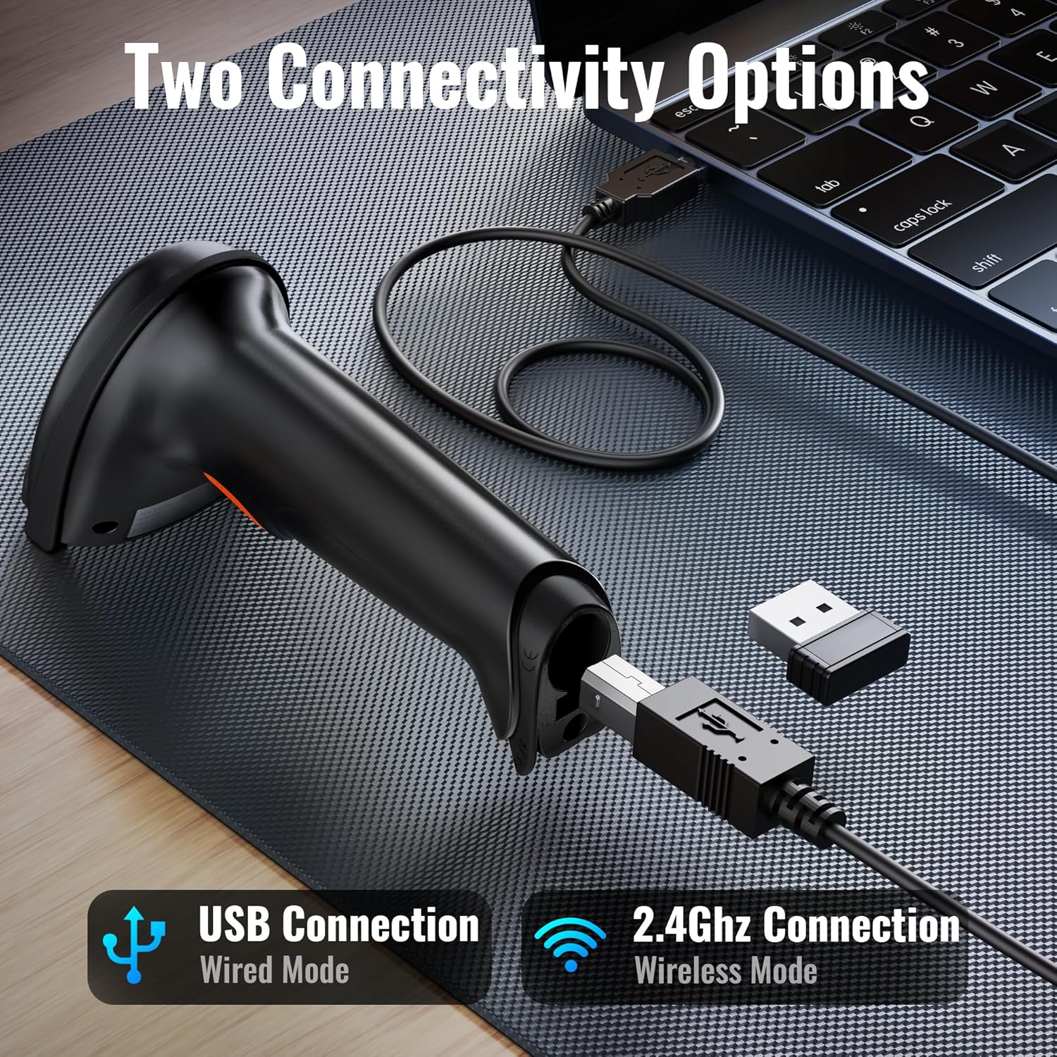 - 【Ergonomic Design】 The curved handle is extended and thickened, tailor-made for North America customers. Specially designed smooth and flat trigger for better grip. 【Package Includes】Barcode Scanner x1, USB Cable x1, Dongle x1, User Manual x1.