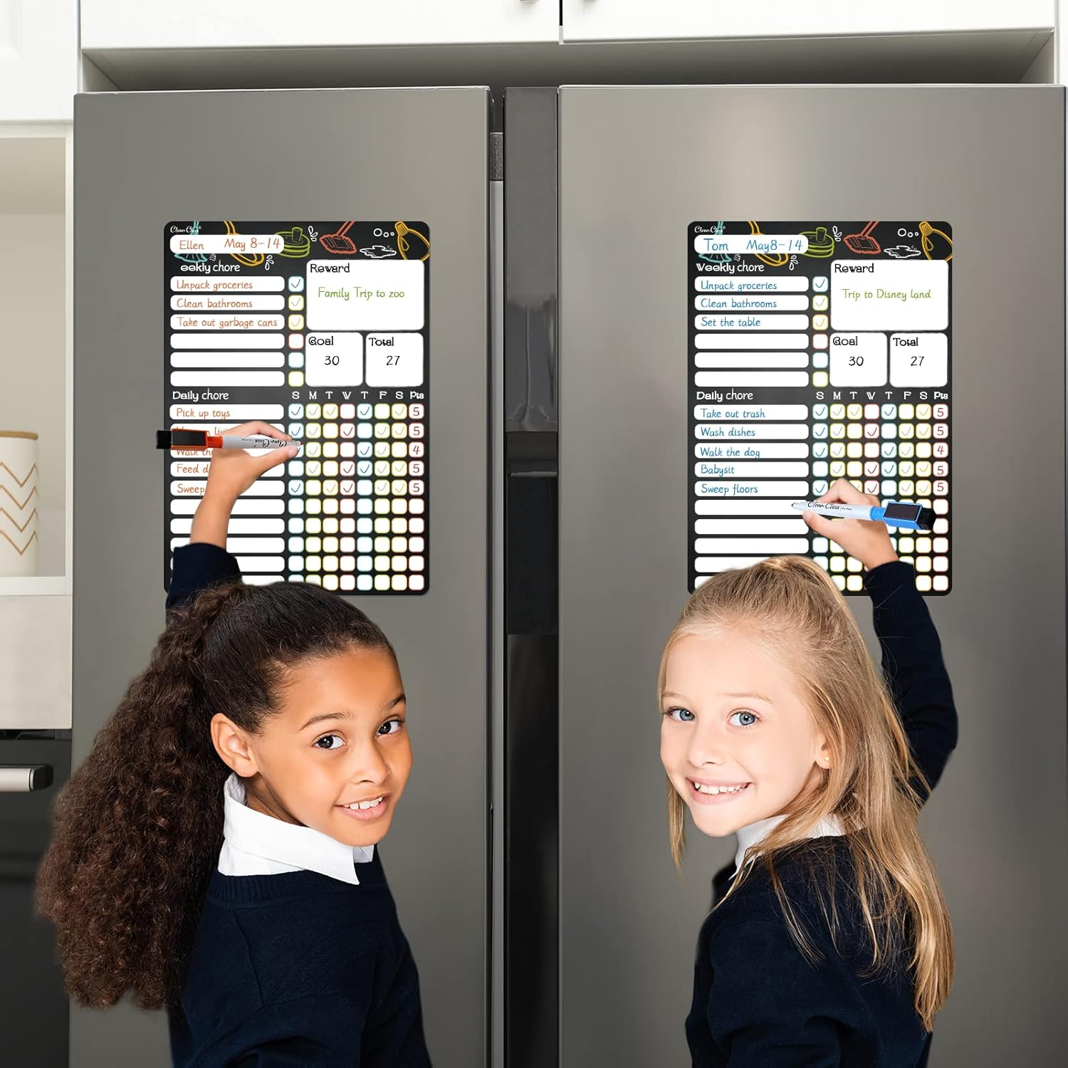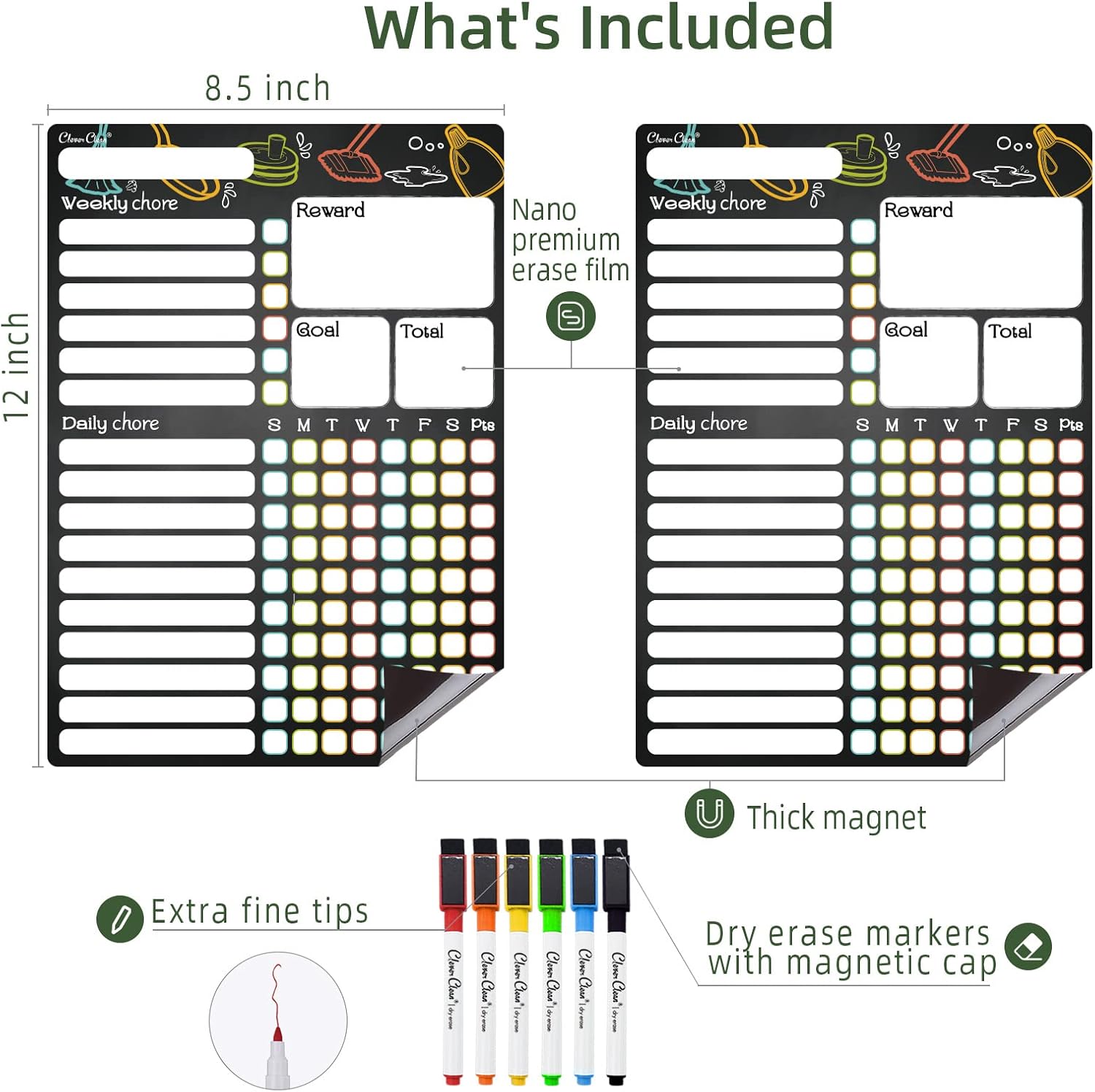 - MAGNETIC CHORE CHART - We all know it's important to teach your kids to share responsibilities. Our 8.5"x12" fridge chore chart is a great tool to help you do this. Set up a reward as a visual motivation for your kids to encourage them to do chores.
