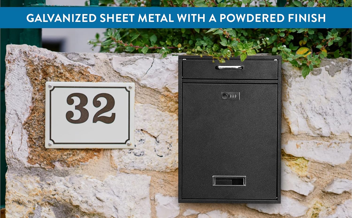 Wall Mounted Locking Vertical Dropbox Mailbox - Safe and Secure (Large) | Made with Galvanized Steel (Black Combination Lock)