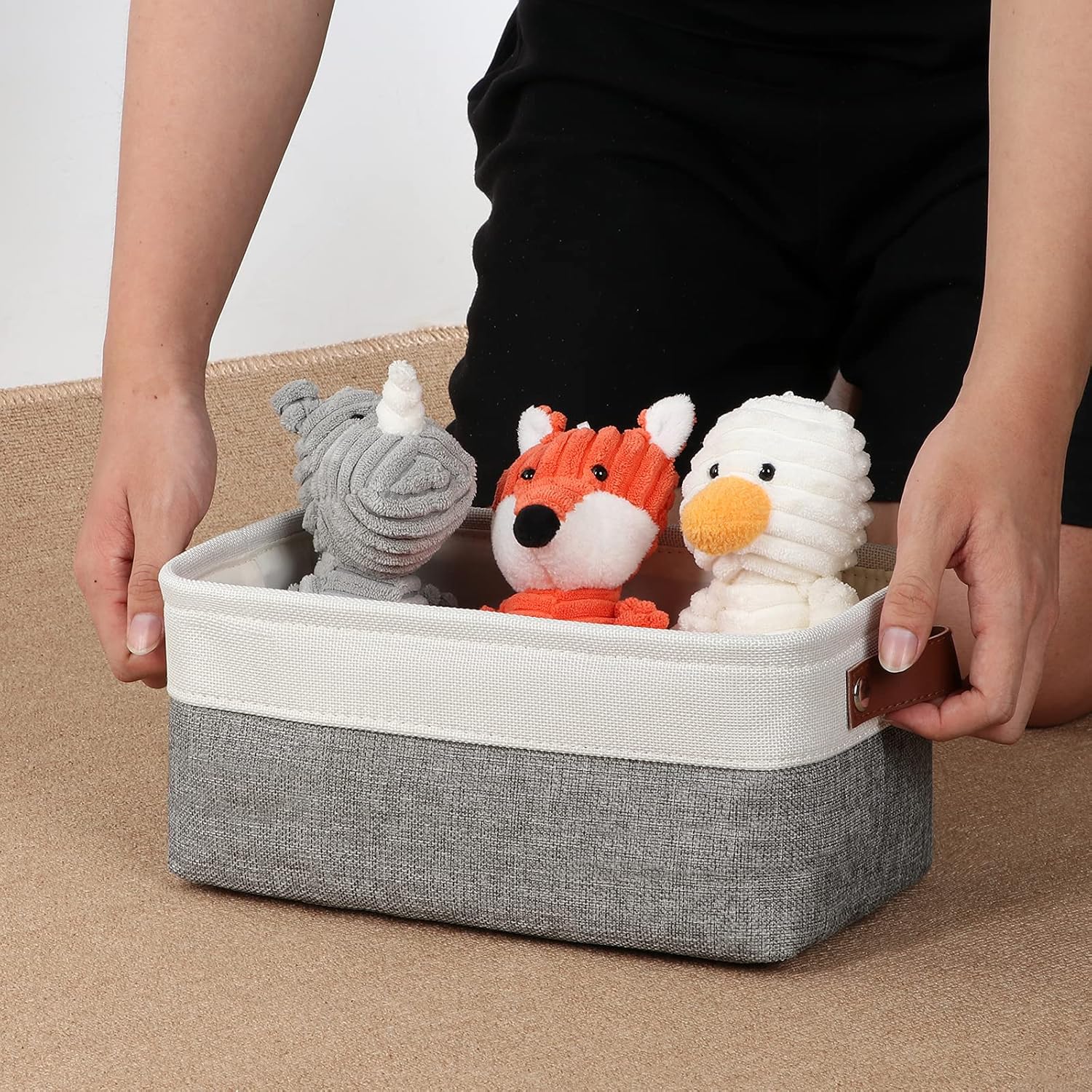 DULLEMELO Small Storage Baskets 6 Pack, Fabric Collapsible Gift Storage Baskets for Shelves, Closets, Nursery, Home, Office Organizing,Small Canvas Linen Rectangular Storage Bins (6-Pack, White&Grey)