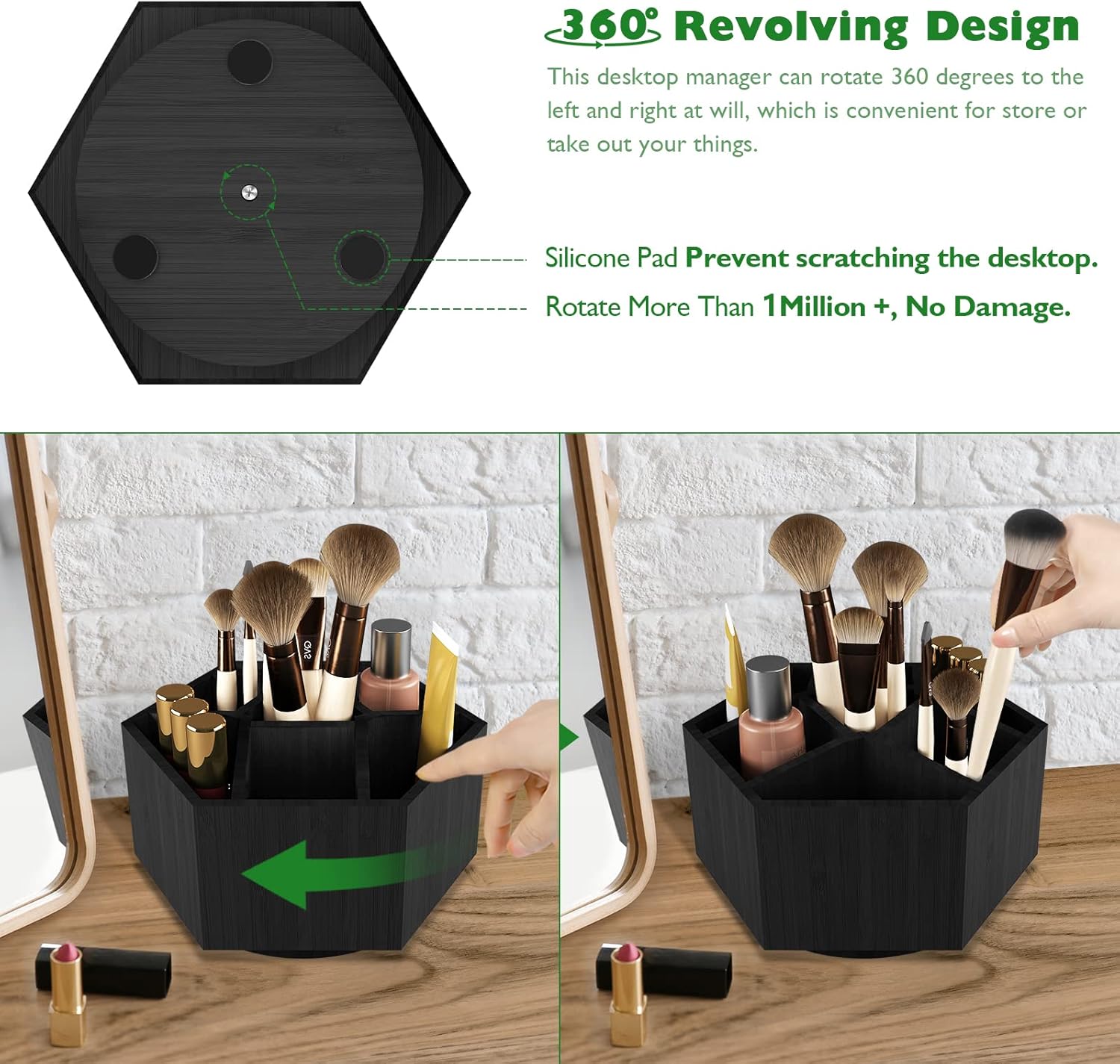 - 【MULTIFUNCTIONAL PURPOSE】The spinning organizer is designed to keep your stuff well organized, 7 sections, 1 big triangle section in middle will be perfect for your pens, crayons, scissors, paint brushes, scissors, staplers stationery, cutlery and more. The elegant design of our desktop storage organizer makes it perfect to use for classroom, living room, office supplies