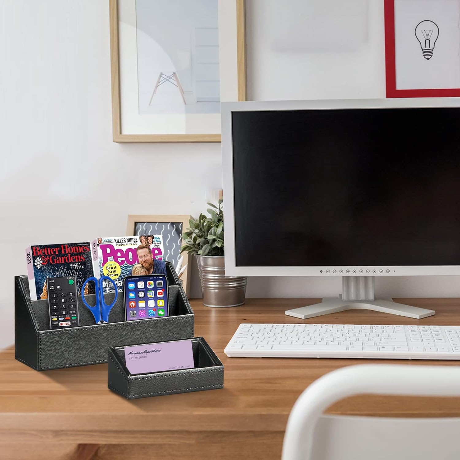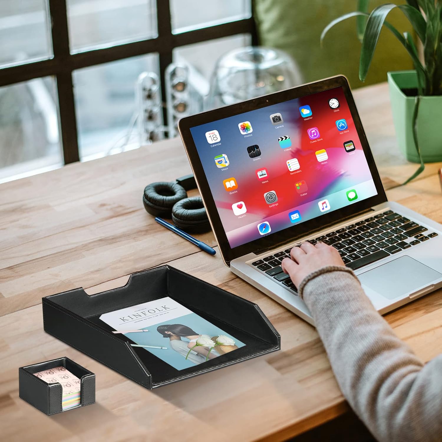 Ayunga PU Leather 6-piece Office Supplies Combination Set,Pencil Cup,Business Card Holder,Sticky Note Dispenser,Mail Sorter,Letter Tray,Files Holder,Suitable for Self-use and Friend Gifts(Black)