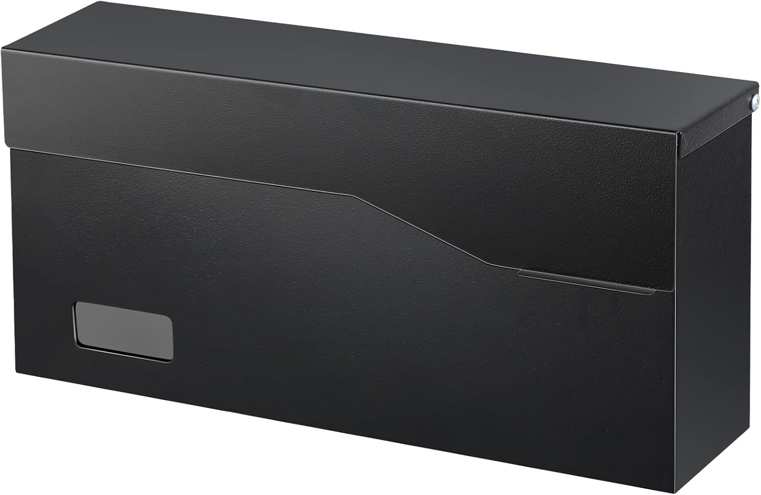 xydled Mailbox Wall Mount Door Mailboxes for Outside, Large Steel Hanging Metal Mailbox, Modern Post Box Package Parcel Drop Box for House Home, Textured Black, 14.56''x7.1''x4''