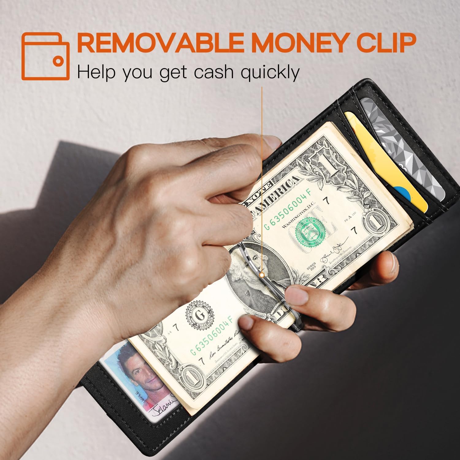 Slim Wallet for Men Genuine Leather RFID Blocking Bifold Minimalist Front Pocket Mens Wallet with Money Clip Thin Gift Box