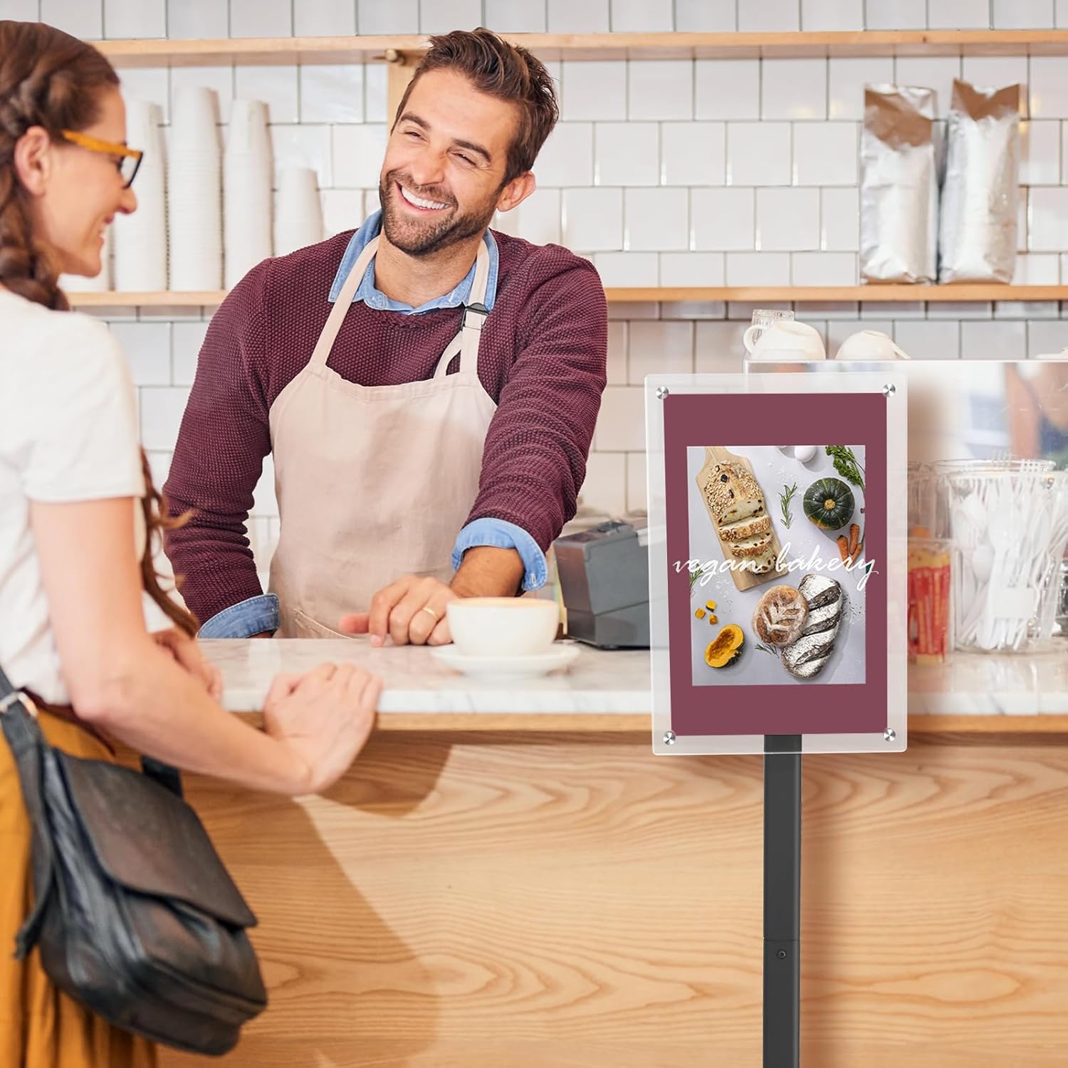 - Multi Scene Display Stand-Sign holder stand serve for displaying 8.5*11 size poster, menu etc.Ideal for wedding,exhibition,showrooms, restaurant, supermarket, shopping malls for posters.