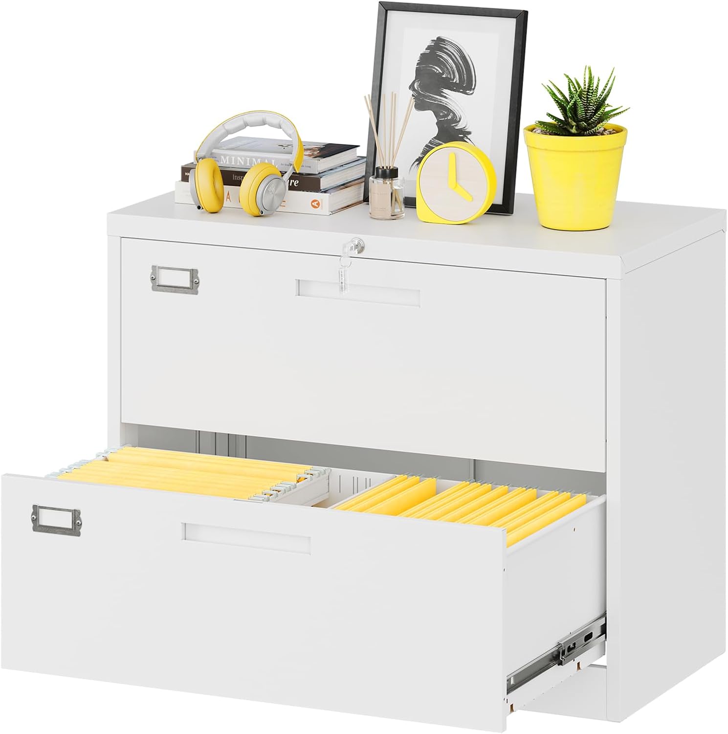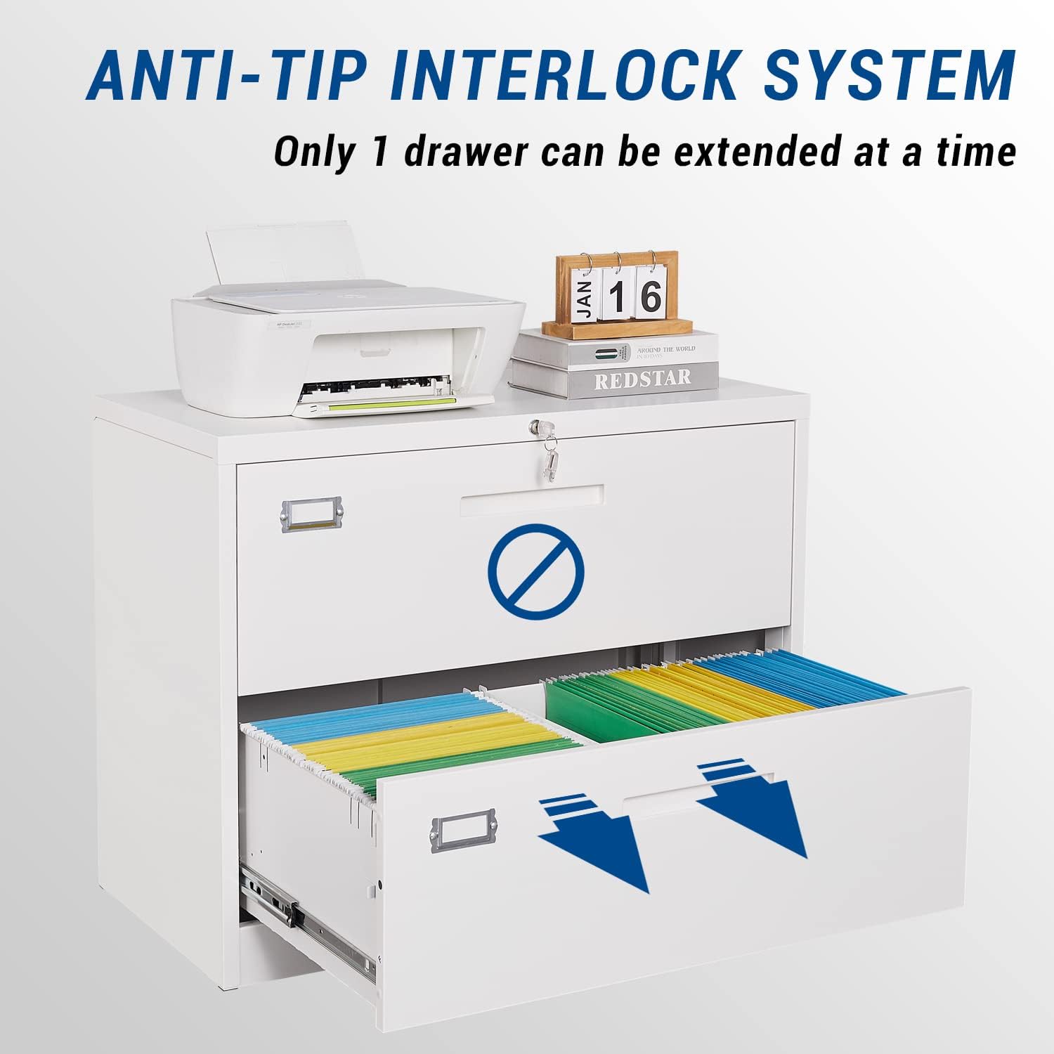 Lateral File Cabinet with Lock, 2 Drawer Large Metal Filing Cabinet,Home Office Lockable Storage Cabinet for Hanging Files Letter/Legal/F4/A4 Size-Assembly Required