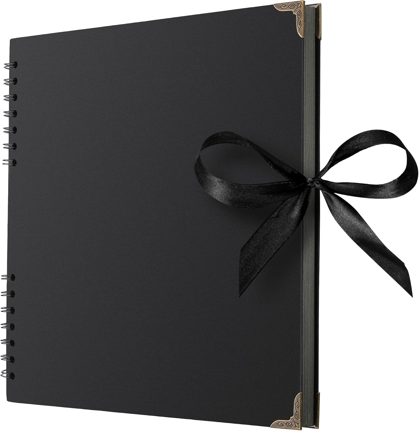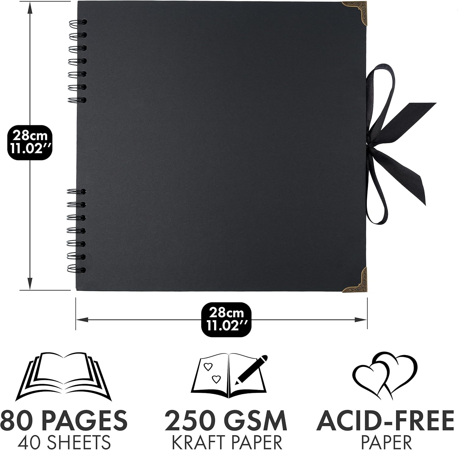 Bstorify Square Large Black Scrapbook Photo Albums 80 Pages (11 x 11 inch) Thick Kraft Paper Scrap Book, Memory Book, Ribbon Closure - Ideal for Your Scrapbooking, Art & Craft Projects