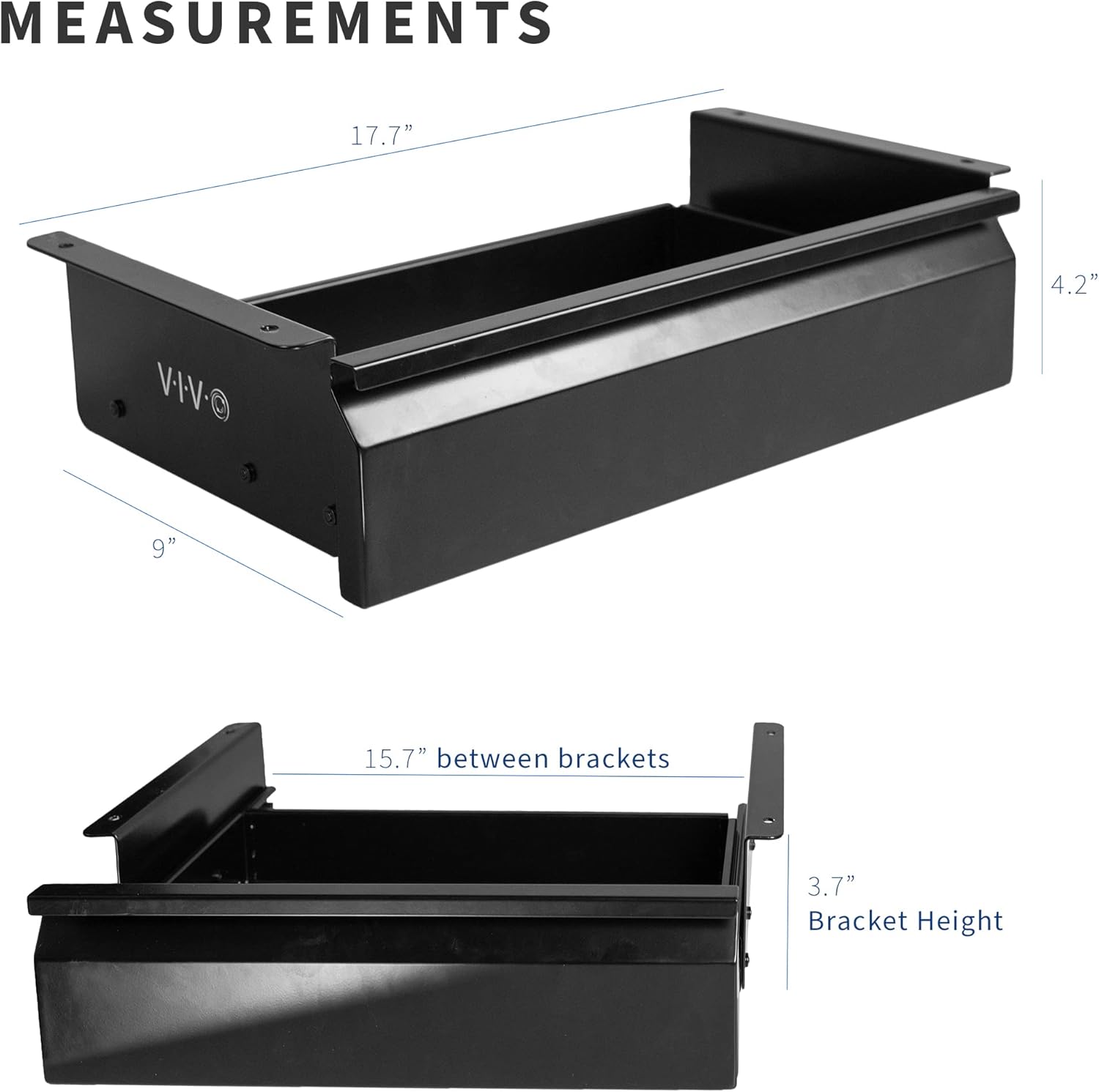 - Under Desk Storage: Sturdy steel drawer mounts to the underside of your desk (at least 3/4β thick) and provides extra storage space for decluttering your area in style. Designed to fit both standing desks and standard fixed-height workstations
