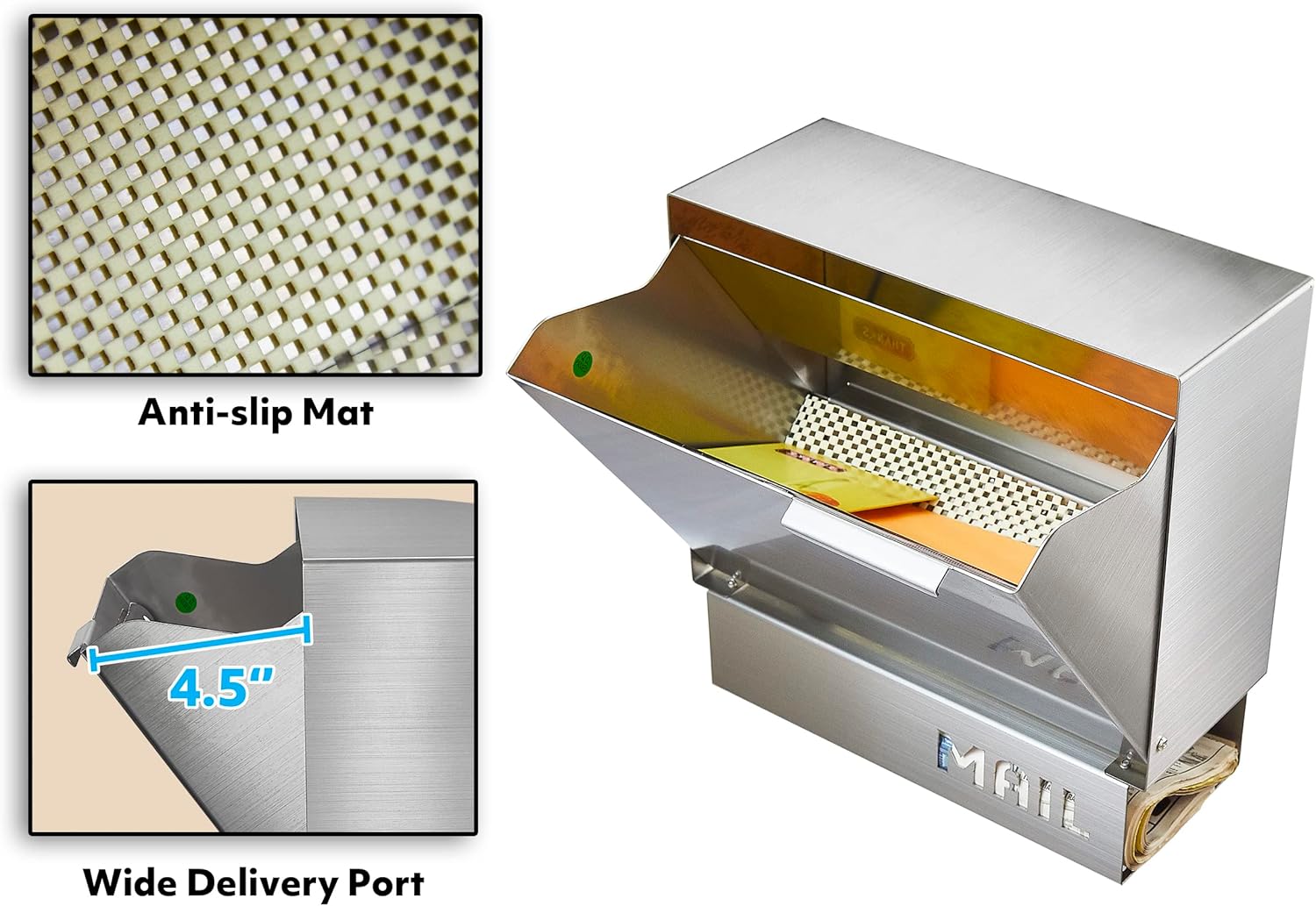 - RUST RESISTANT STAINLESS MAILBOX: Our wall mounted mail box is made of 1.1mm heavy duty steel, making this architectural mailbox rust resistant and long lasting for your home and business.