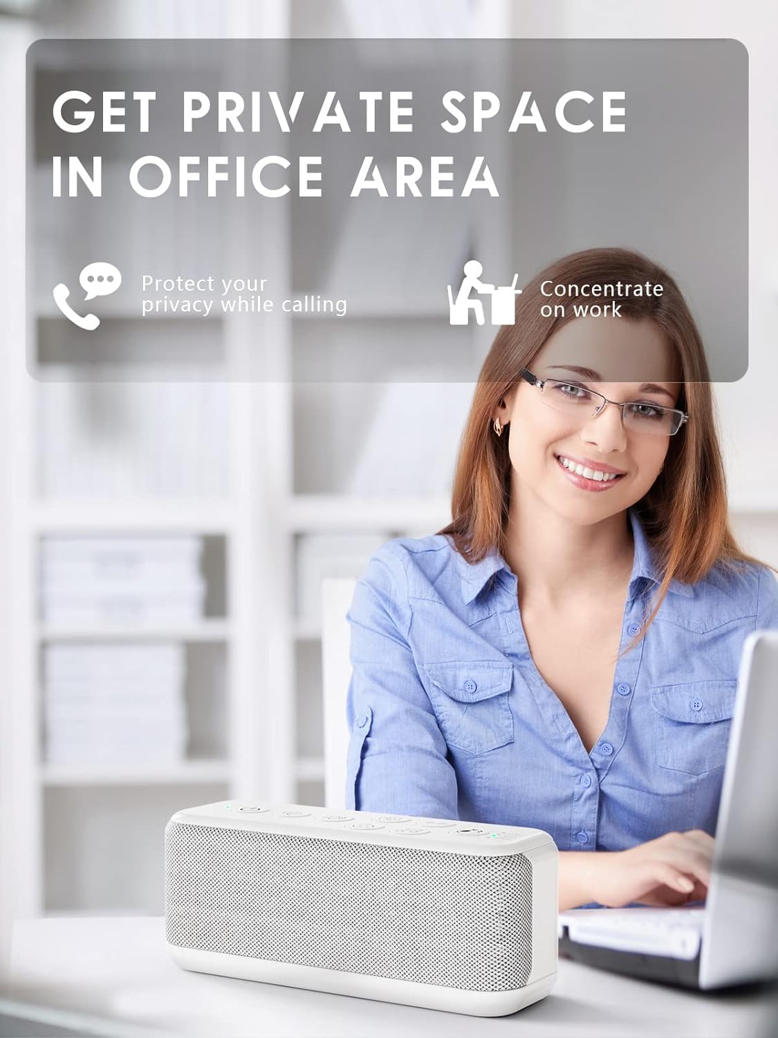 - 【White Noise Machine for Office Privacy & Noise Canceling】:Our white noise machine can be widely used in office area.It has several white noises and high-range volume that can protect the private talking.Also it has a headphone jack can help people concentrate to work without disturbing others.
