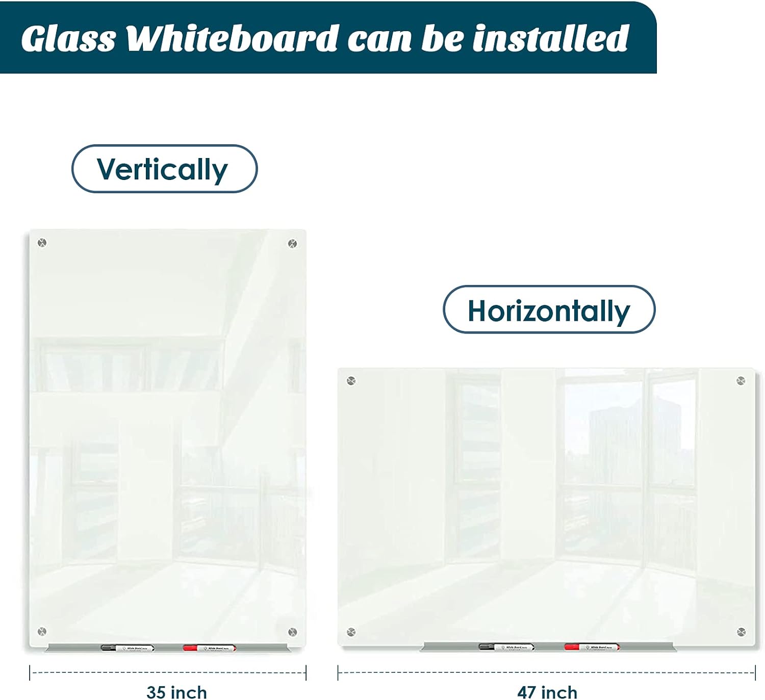 - 【MAGNETIC POSTING】: Multifunctional glass white boards for walls are great for meetings and presentations. Easily hang papers and documents instantly with the included 4 high power glass board magnets.