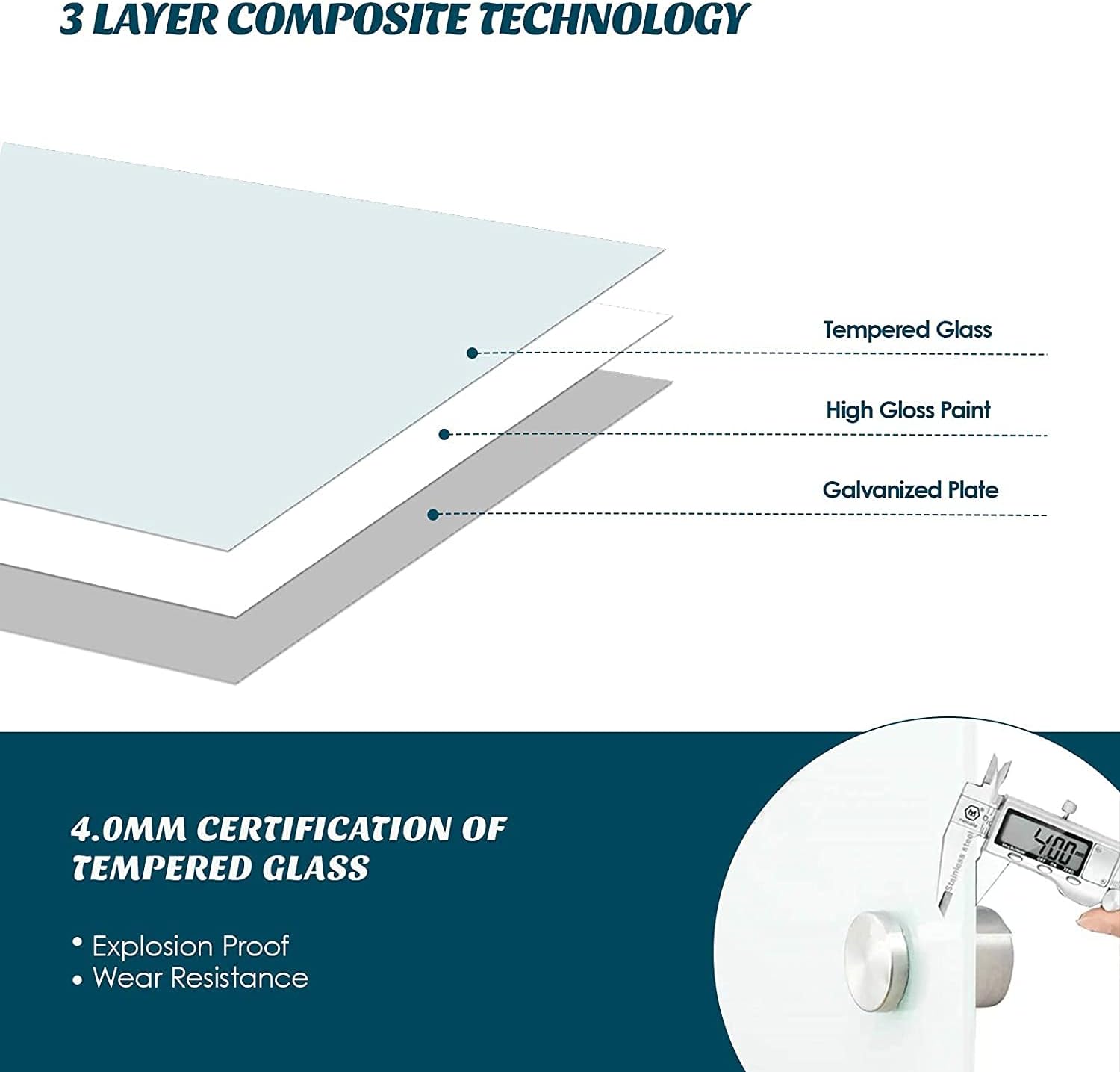 - 【ENVIRONMENTAL & LONG-LASTING】: The strong durable tempered glass surface resists stain and ghosting. Designed with 4mm thickness, rounded corner, and smooth edges. Cleaner, safer, and longer-lasting than traditional whiteboards.