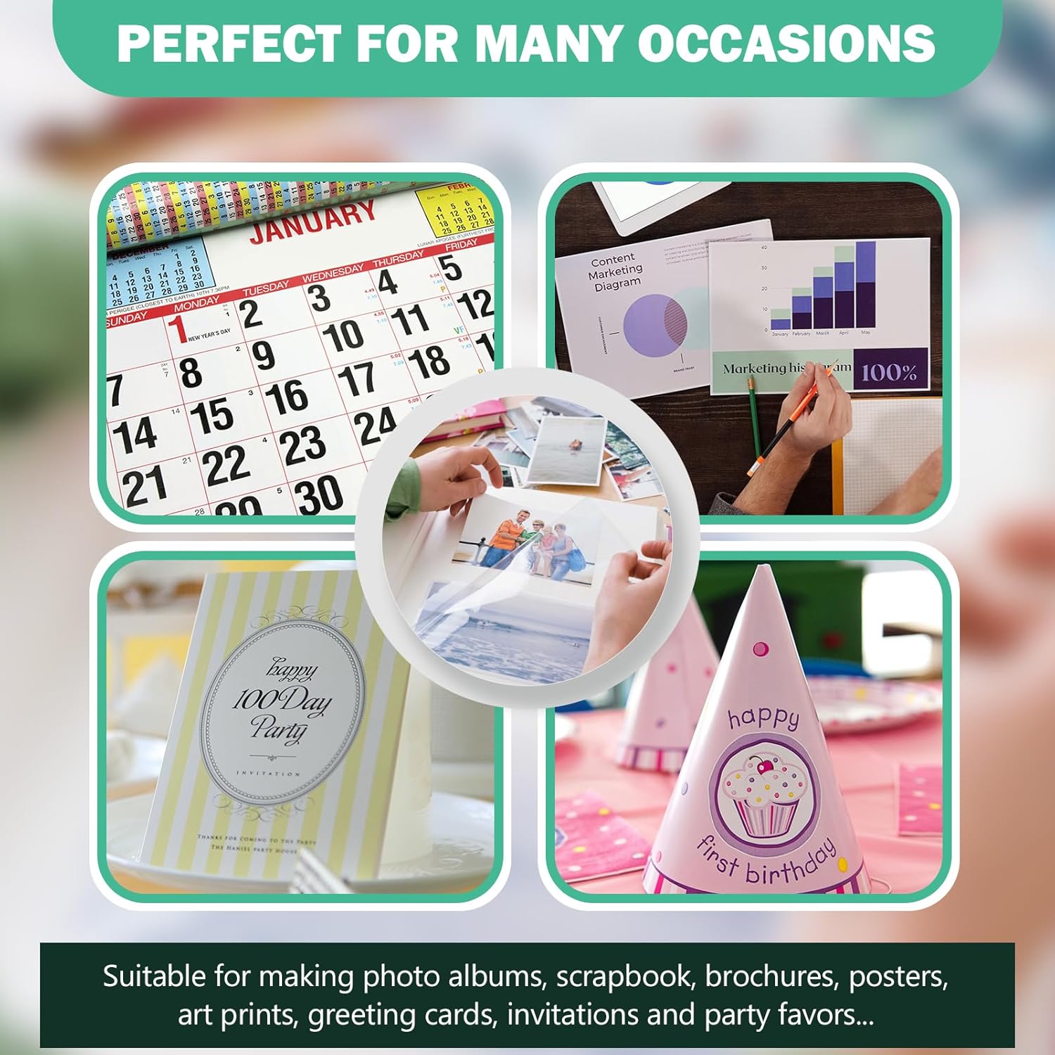 Glossy Photo Paper 4x6, 5x7, 8.5x11, 120 Variety Pack Bulk, Assorted Sizes, Inkjet printer, 52lb/200gsm