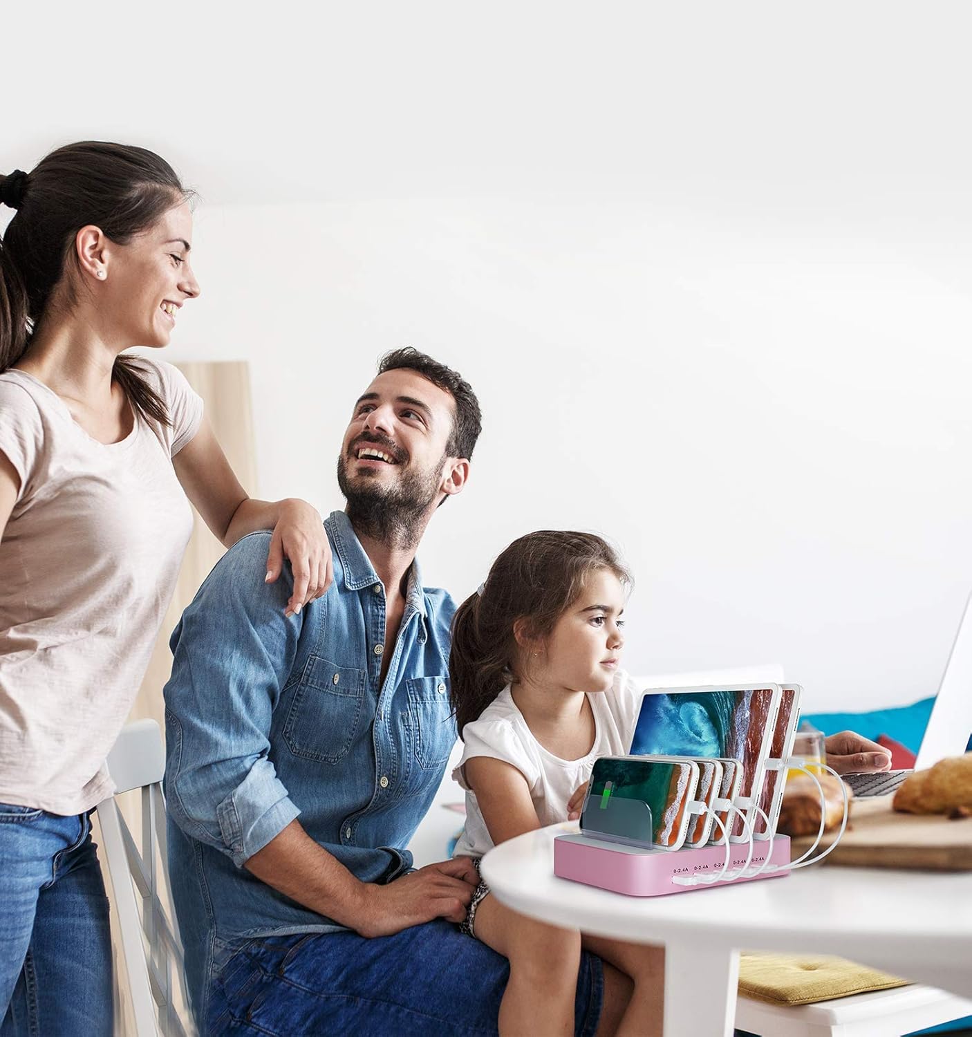 - 【Love by Families】This portable USB-A charger station is a great gift for your dads, moms, mother-in-law, father-in-law, sisters, brothers, coworker, girlfriend, boyfriend. Charging station can be used for your home, kitchen counter, desktop, nightstand, office, school, hotel, travelling..