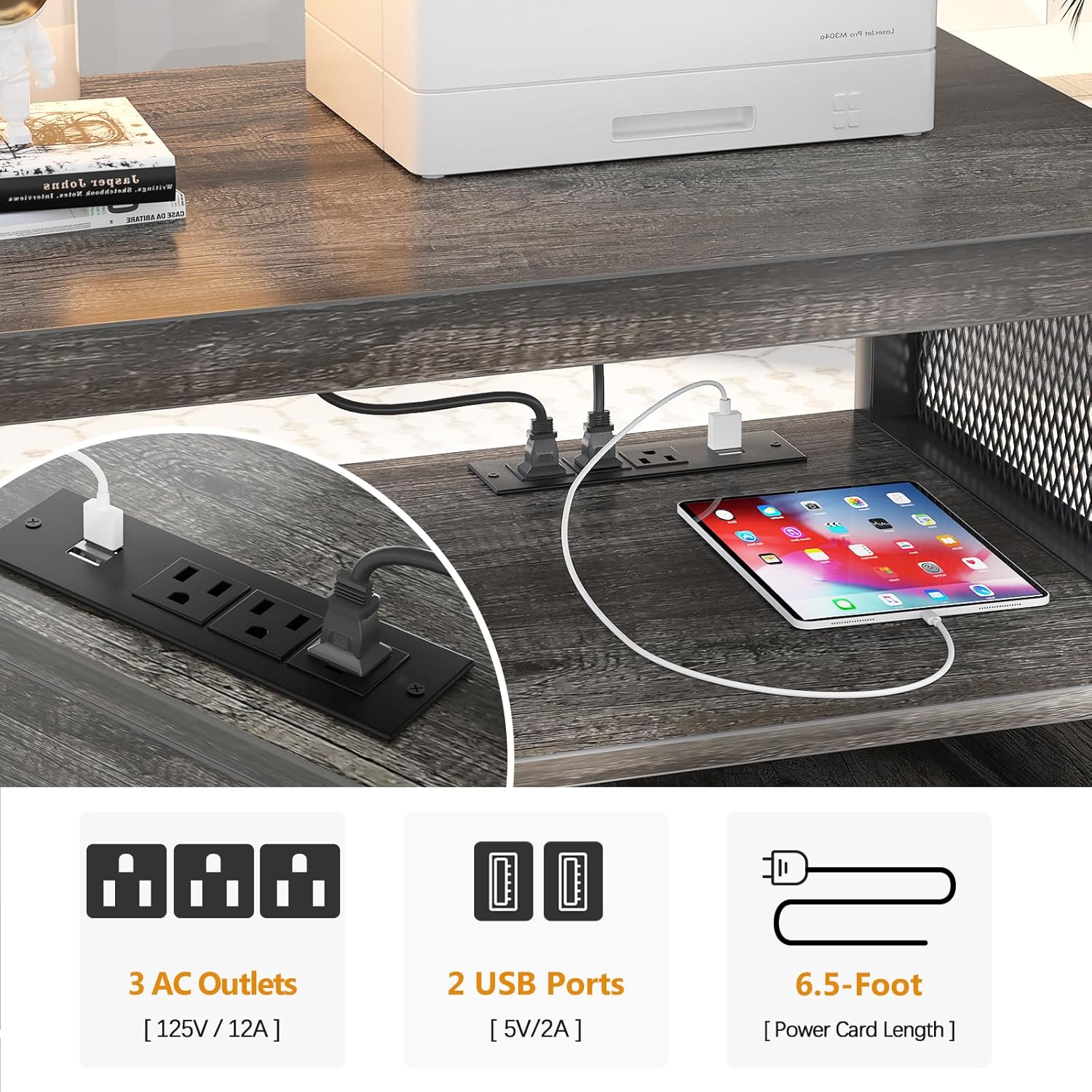 - 🔌【Power Outlets and USB Charging Ports 】 This file cabinet is built in 3 power outlets and 2 USB charging ports for your printer, scanner, phone, headset, tablet and other office electric equipments with fast charging flexibly at the same time, which provides a great convenience to your work when you are using them.