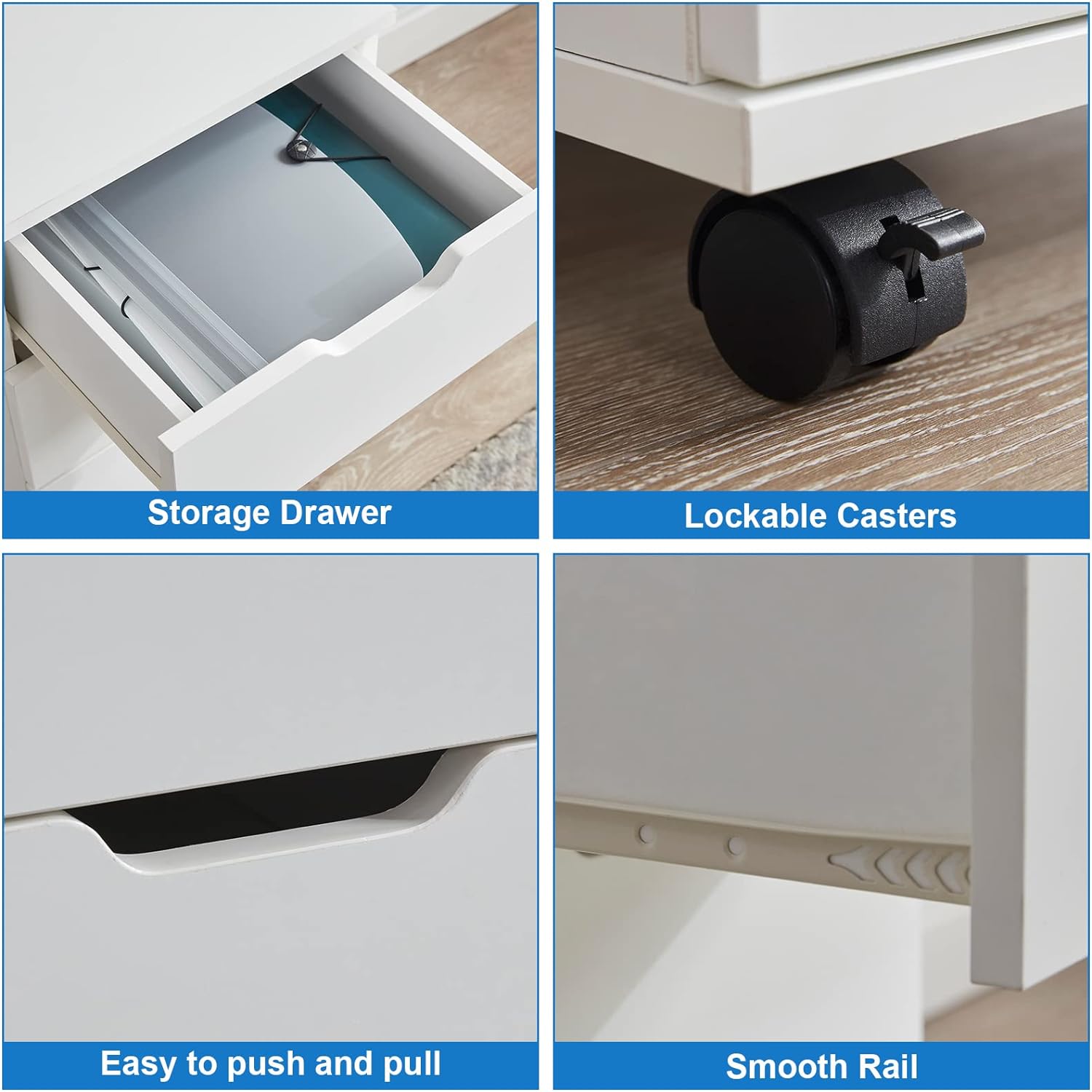 Farini 3-Drawer Vertical Filing Cabinet Rolling Wood Mobile File Cabinets Under Desk for Home Office with Casters (White, Fully Assembled)