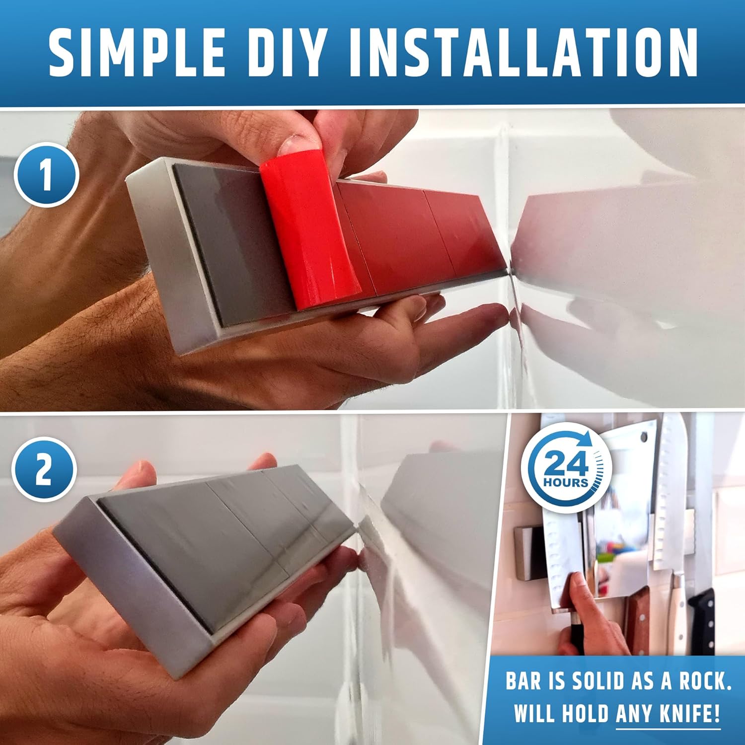 - KNIVES WILL NEVER FALL: This is the strongest knife holder available. Premium neodymium magnets with powerful pull force and industrial-level adhesive ensure your heaviest knives stay secure. The bar will not fall off your wall, even with the largest kitchen items.