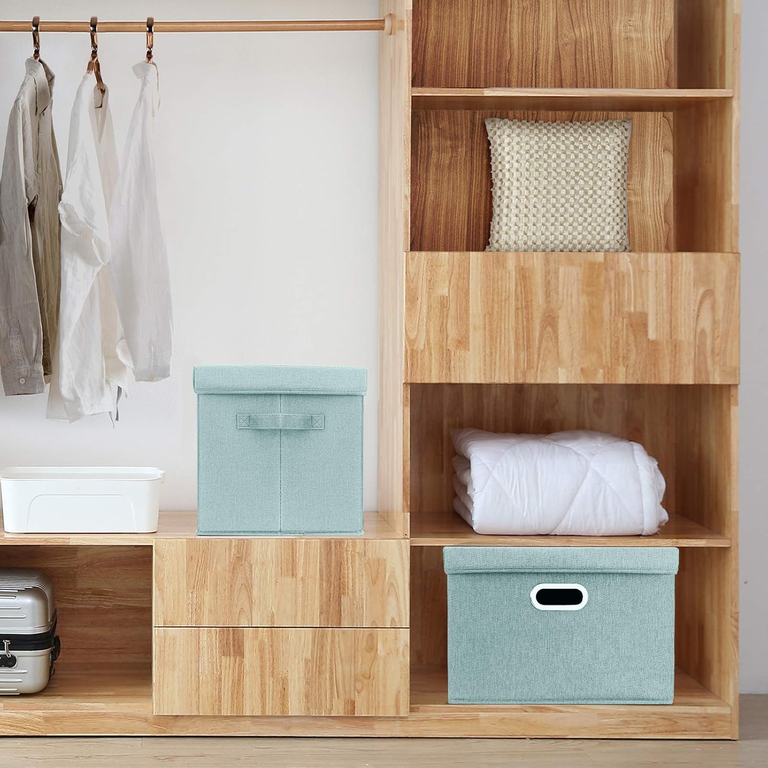 TYEERS Large Storage Bins with Lids, Collapsible, Washable, Fabric Storage Boxes for Organizing, 17.3x11.8x11.4 inches, 5 Pack, Aqua Spring