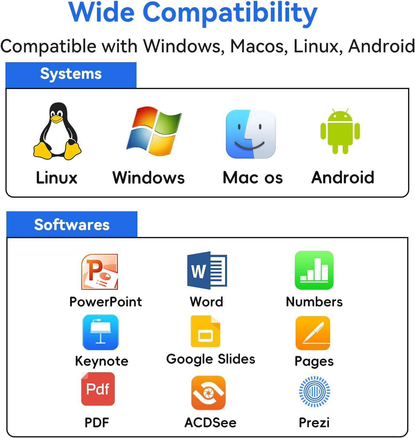 - Universal Compatibility: This powerpoint clicker is compatible with various operating systems, including Windows, Mac OS, Linux, and Android. It effortlessly integrates with popular presentation software like Google Slides, PowerPoint, Prezi, and iWork, making it the ideal choice for professionals across different platforms.