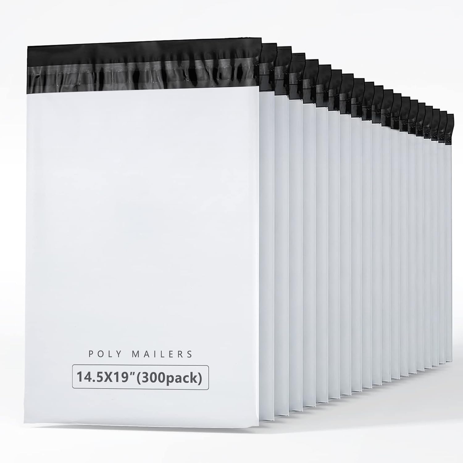 Metronic 300 Pcs Shipping Bags 14.5x19, Large Poly Mailers for Small Business Supplies, White Poly Bags for Clothing Packing Supplies, Strong Adhensive Self Seal Mailing Packing Bags Postal Bags