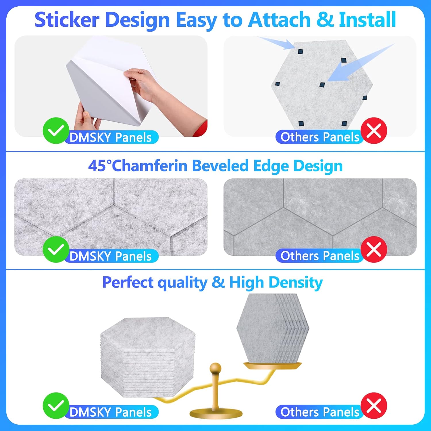 - ♬【Easy to Cutting and Install】Easy to cut with a knife, You could create different styles of decorative wall art in your favorite space! The biggest difference with other acoustic panels sound absorbing on the market is that our sound dampening panels come with self-adhesive.Just peel off the protective film and stick it to the walls ,door and ceilings. If you try our sound proof panels, you would know how easy to install