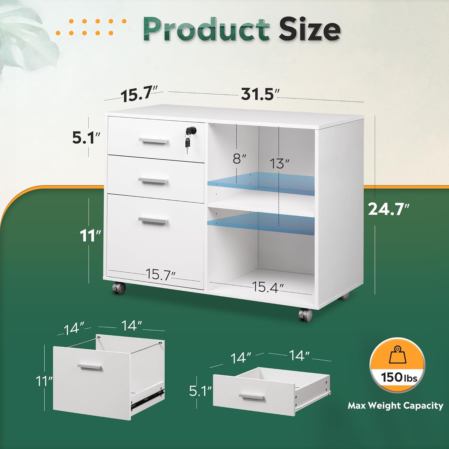 - Multifunctional File Cabinet with Lock: This file cabinet features open storage spaces, file drawers, and storage cabinets, allowing you to organize office equipment, papers, files, and supplies neatly. It keeps your personal belongings secure.