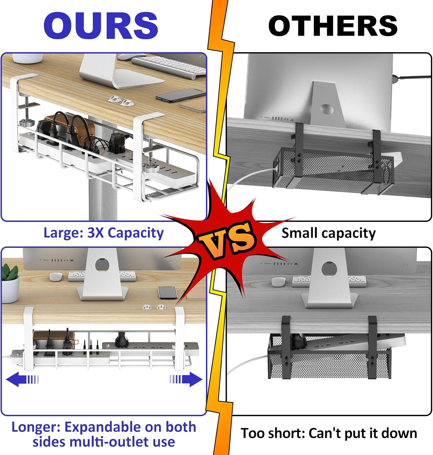 - UNDER THE DESK CABLE TRAY : Comes with 2 packs of thick metal cable trays. These cable trays are super sturdy and extra long-lasting. Measuring 40 cm/15.7" long and 12.5 cm/4.9" wide each, it organizes unsightly data cables, power cords, power strips and power adapters that plague modern desks and tuck them away out of sight.