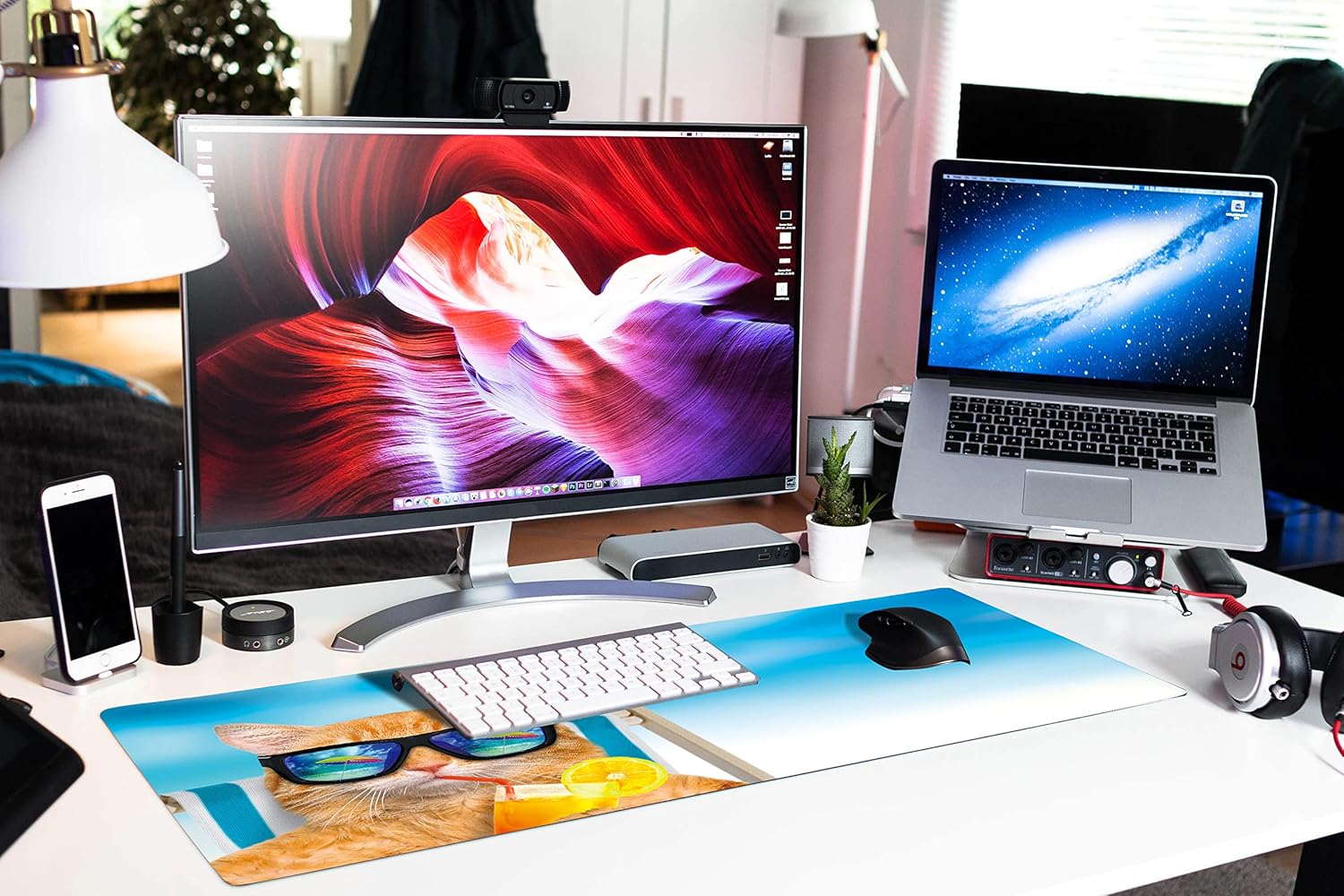 Extended Large Gaming Mouse Pad Cute Cat on Beach Chair XXL Size Keyboard Mouse Mat Desk Pad with Non Slip Rubber Base Stitched Edges Office Decor for Women Girls Men,35.4 x 15.7inch