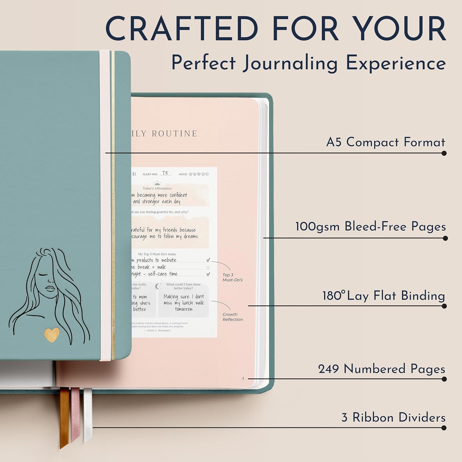 - Premium Journaling Experience - Relish the luxury of an A5 fabric hardcover, the quality of 100gsm bleed-free pages, and a 180 degree lay-flat design. Three elegant cover shades, all presented in a beautifully crafted gift box, showcase the perfect blend of function and artistry.