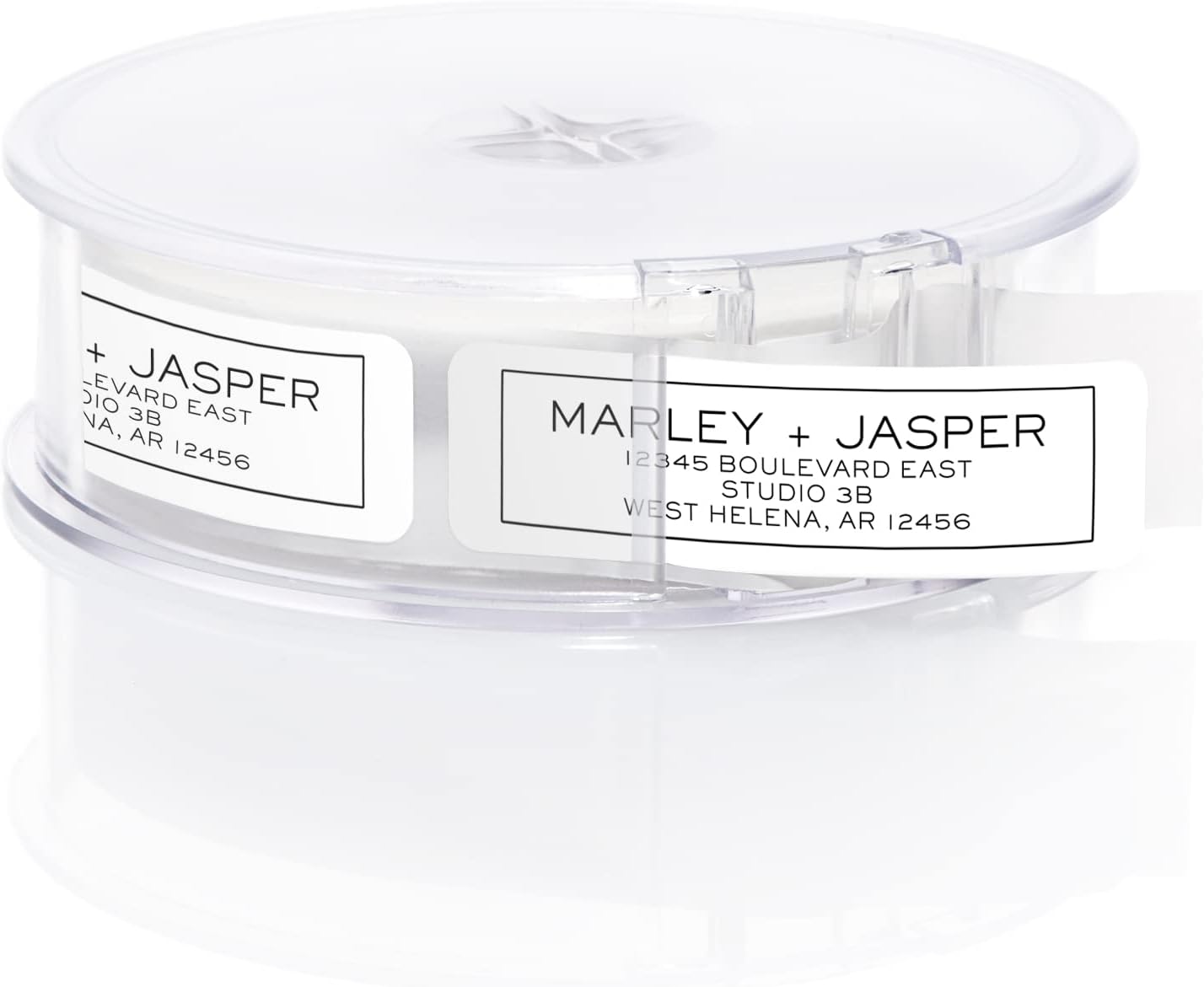 Simple Modern Outline Rolled Address Labels/Roll of 500 Square Box Personalized Address Labels/Designer Return Address Stickers in Elegant Plastic Dispenser