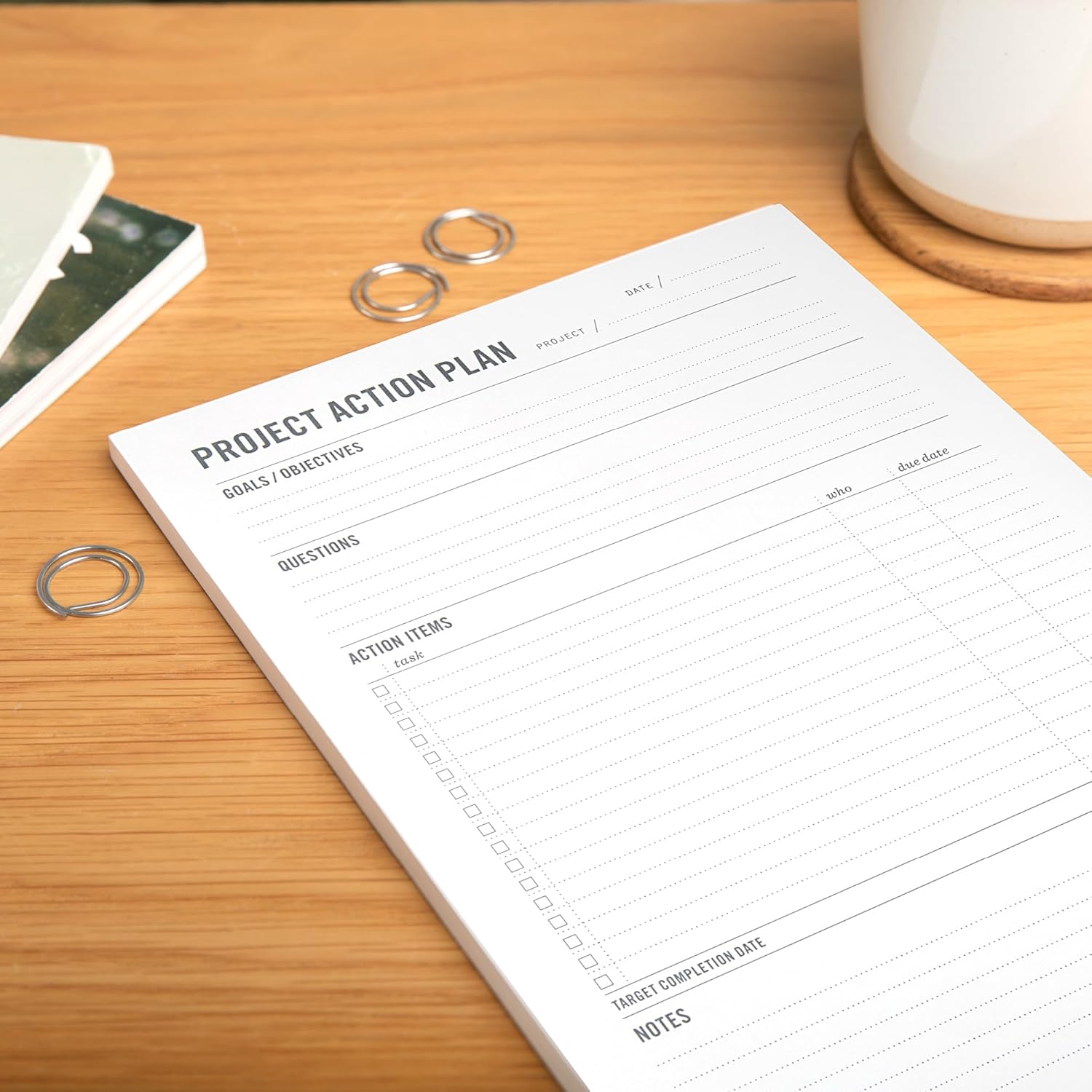 Two Tumbleweeds - Project Planner Notepad - 7 x 10” Planning Pad for Project Management with Checklist, Action Items, Notes - Task Planner - To Do List Organizer For Work & School - 50 Sheets