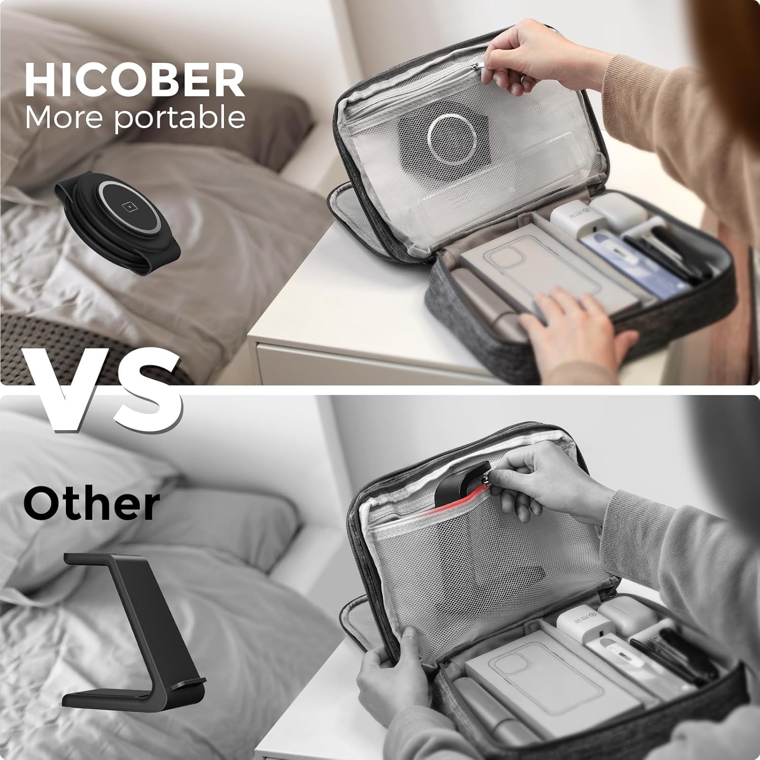 - Travel Essentials: Portable and Foldable Travel Charger: This foldable travel charger stand is a great addition to your travel gear, lightweight and portable, easy to pack in a bag or suitcase, providing a stable charging experience during your travels or business trips; It also doubles as a phone stand, allowing you to adjust it horizontally or vertically for easy movie-watching or FaceTime calls