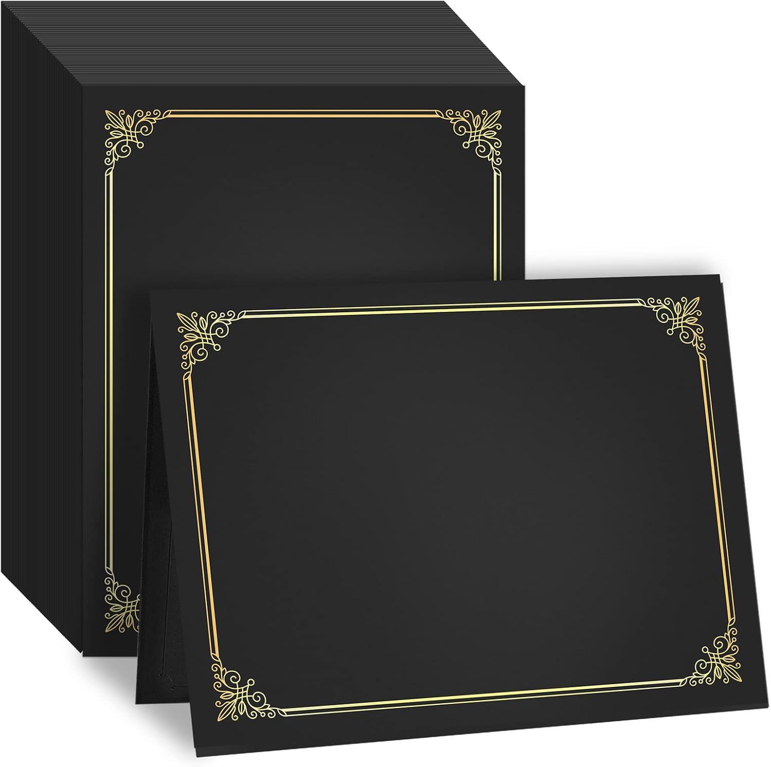 GNL 50 Packs Black Certificate Holders - Diploma Holders, Certificate Covers with Gold Foil Border, for Letter Size 8.5 x 11 Award Certificate Paper and Documents