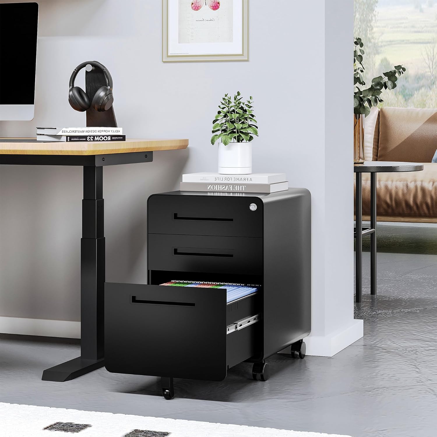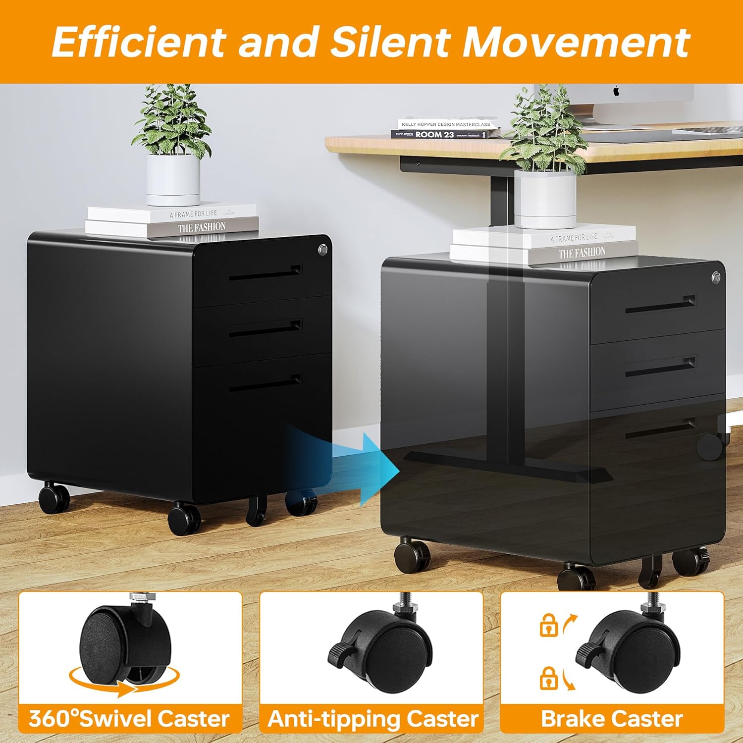 STANI 3 Drawer Filing Cabinet, Metal Filing Cabinet Legal/Letter Size with Lock, Mobile Storage Cabinet for Home and Office, Fully Assembled Except Wheels