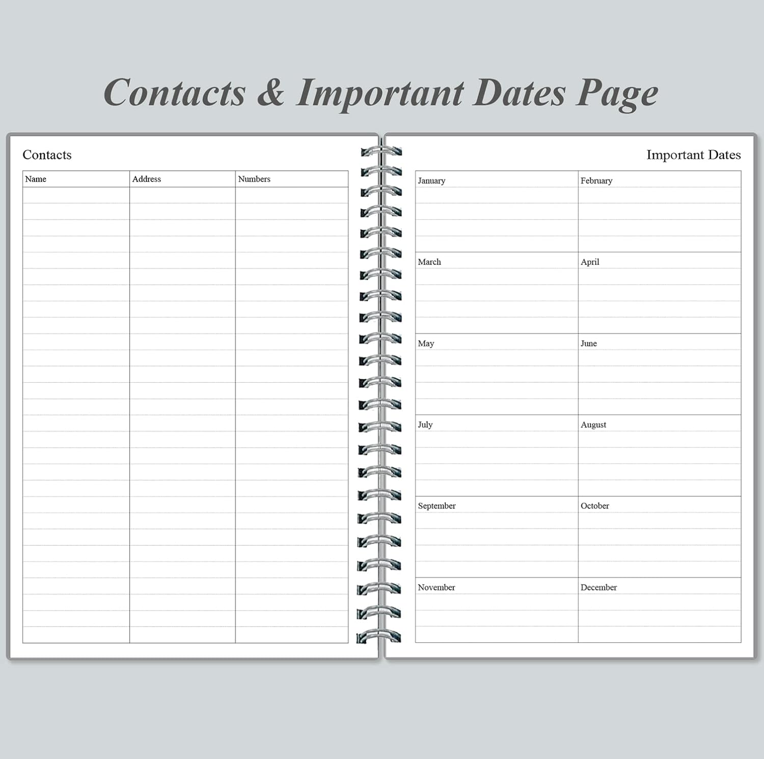 - A5 SIZE - This undated daily organizer size of 8.5 x 5.8 inch, perfect size to fit in your bag.1 quick reference page, contact pages, important dates page, and 75sheet (150 page) daily plan & notes,8 dotted grid pages, Undated appointment planner makes it easy for you to start the planner at any time.