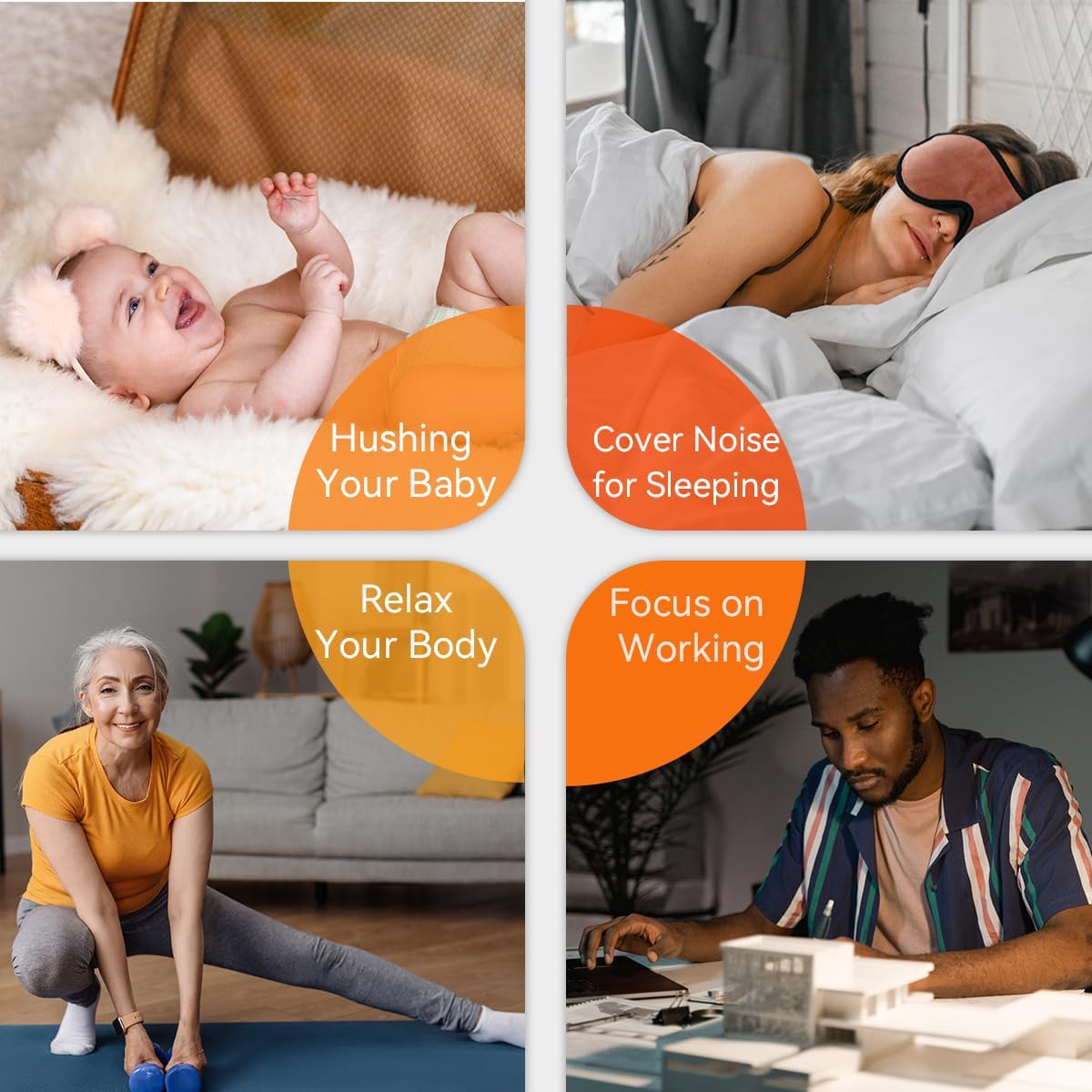 - [36 Levels of Volume] The white noise machine has 36-level adjustable volume which can effectively block indoor and outdoor noise, help soothe crying babies, cover up annoying snoring, dog barking and relieve irritability and anxiety. Suitable for travel, reading, sleeping, office.