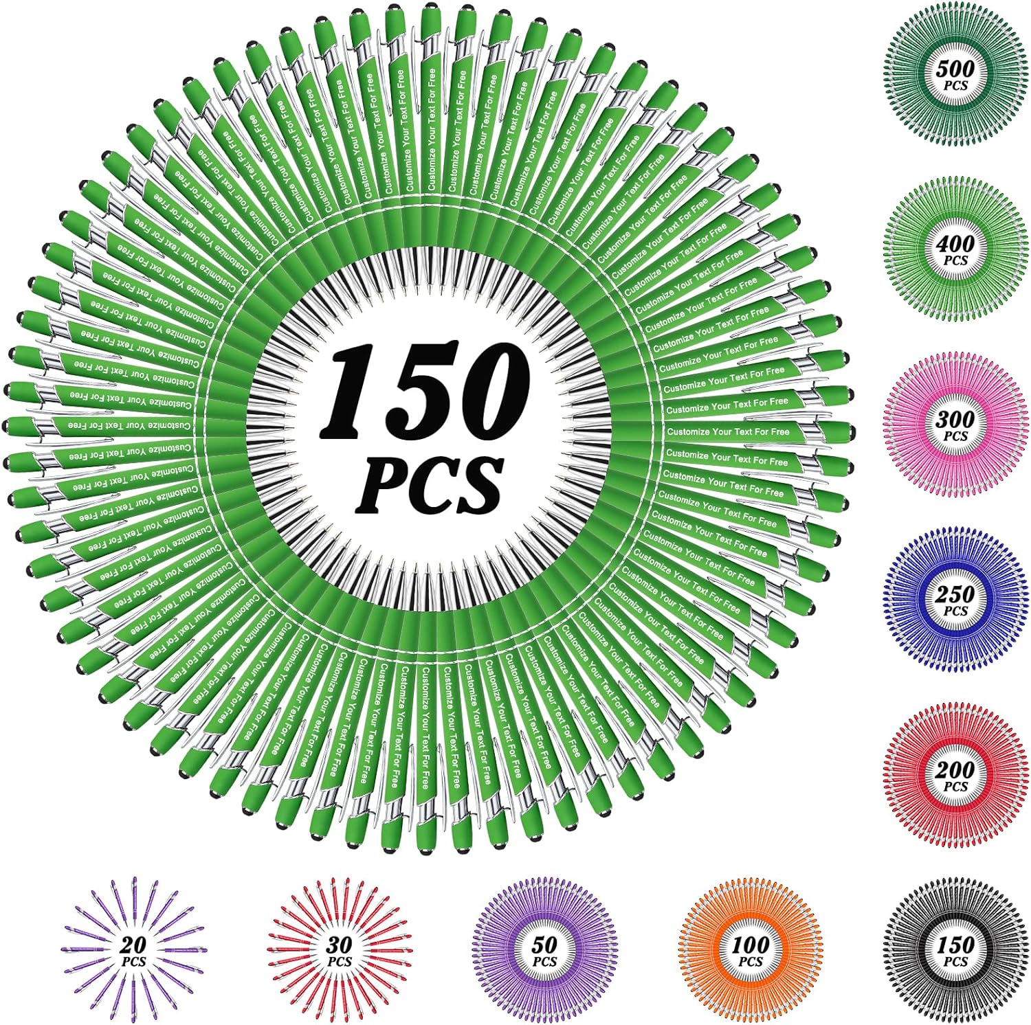 Max 500 Pcs Personalized Pens Bulk, Custom Pens with Free Engraving, Customized Stylus Tip Ballpoint Pen with Your Name Massage Text for School Office Business Graduation Anniversaries-150 Packs