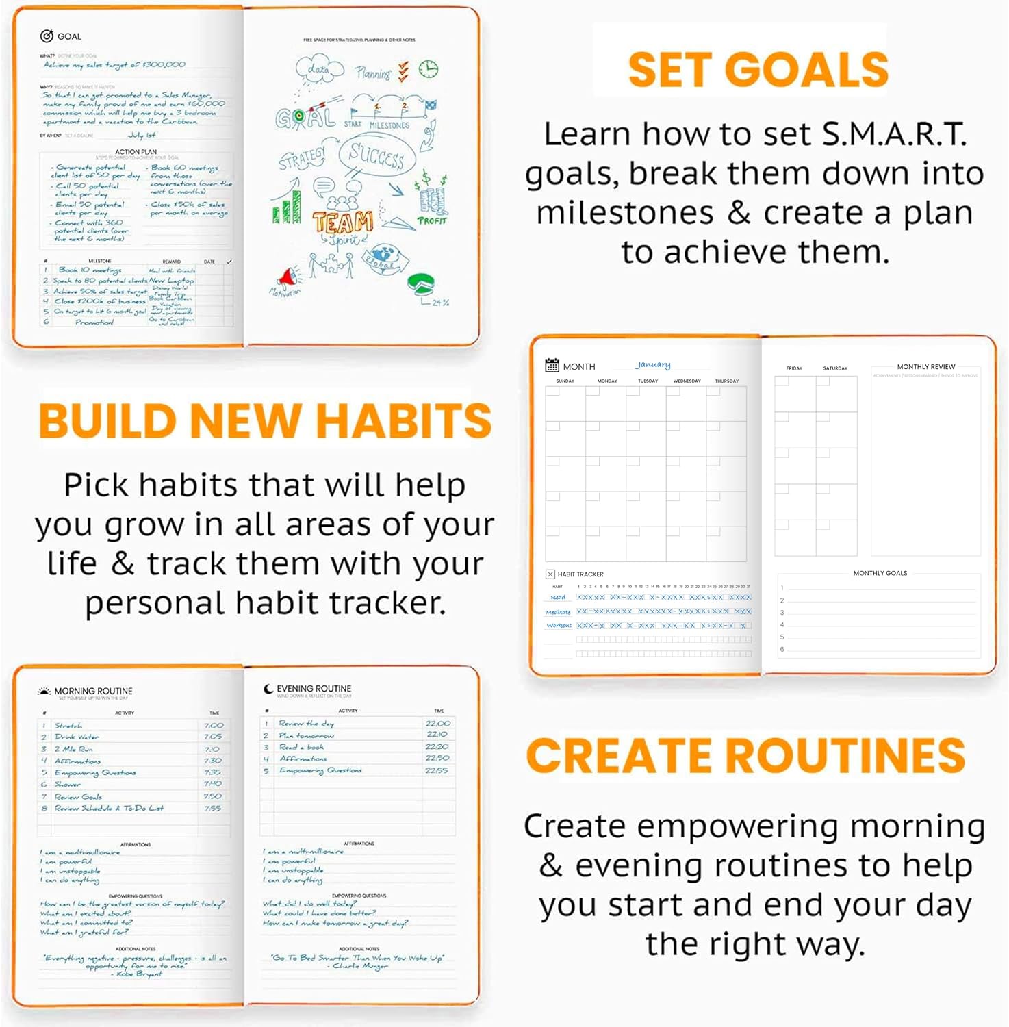 - STAY ALIGNED WITH YOUR GOALS – Use built-in goal-setting tools and review prompts to stay focused on long-term success—whether you’re managing business milestones, career growth, or personal development.