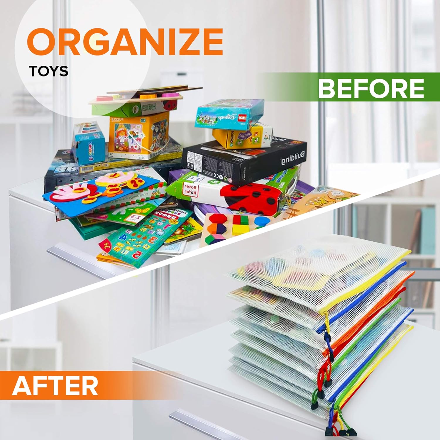 - ☑️ VERSATILE & PRACTICAL - These mesh zipper bags not only help you to stay organized, but they are also a great solution for storage. They are useful in home storage, documents organization, office supplies management & travel organization.