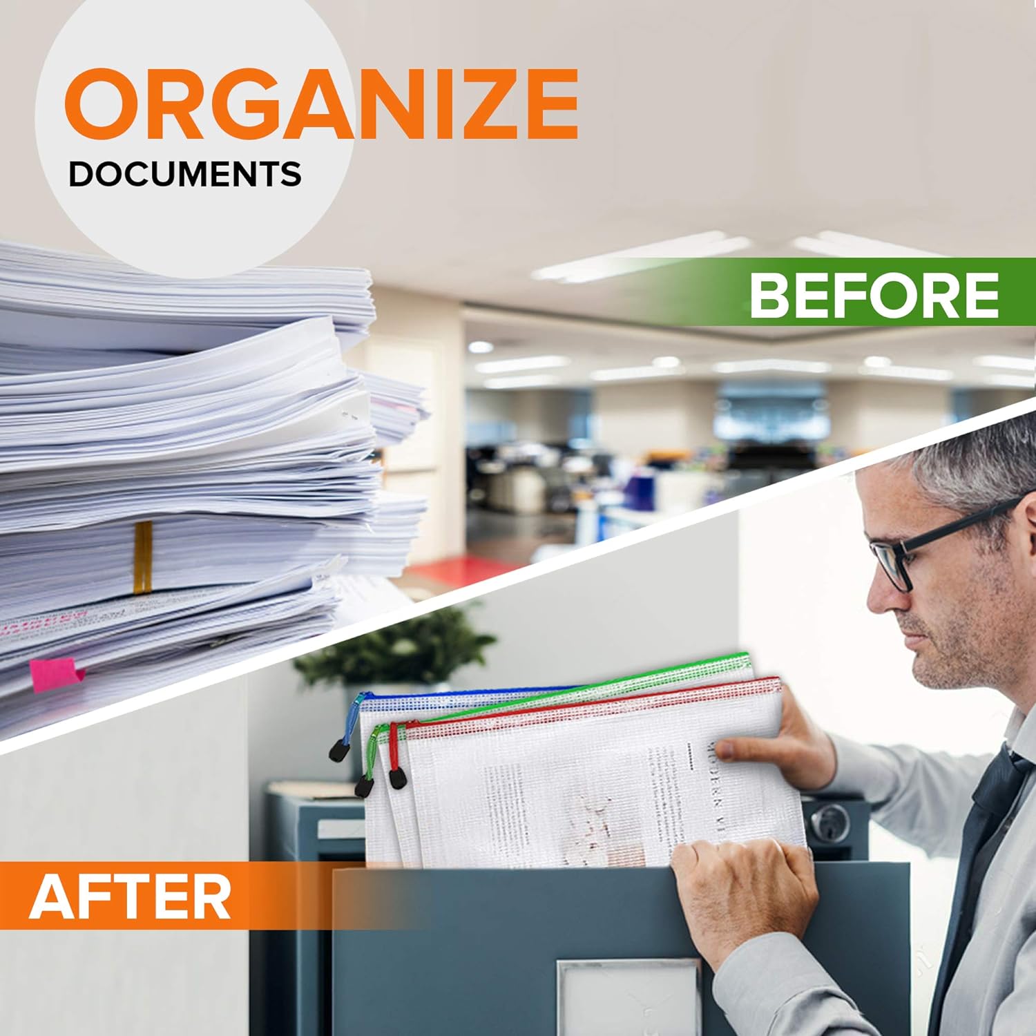 - ☑️ GENEROUSLY-SIZED & DURABLE - Our mesh zipper bag is made from high-quality material, ensuring long-lasting strength & reliability. Safely store your documents, books, notebooks, recipes, invoices & any other items without worrying about wear & tear.