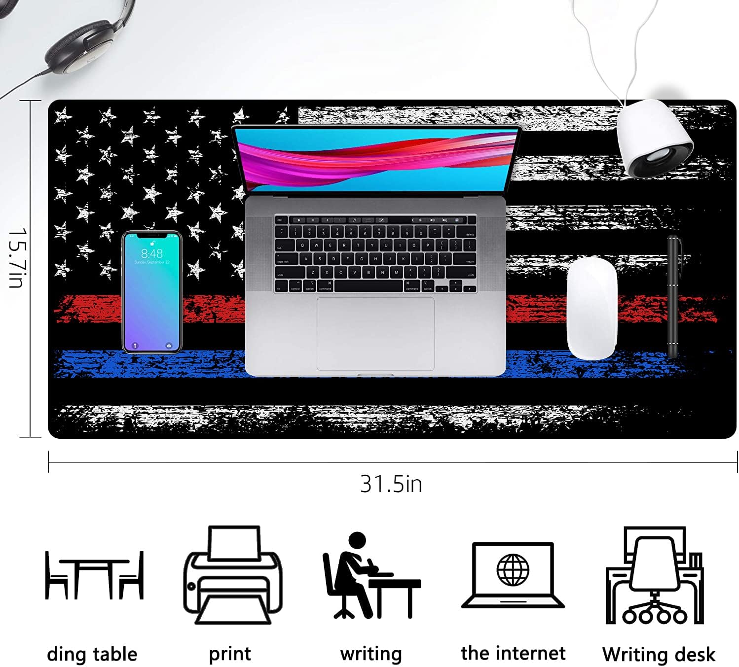 - 【 Extended Large Size 】Large Mouse Pad Size: 35.4 x 15.7inch,The mouse pad is large enough to hold a keyboard, mouse, tablet, laptop, game pad and other desktop items, you don't have to worry about lack of space, you can move the mouse freely. Ideal for office, gaming or study.