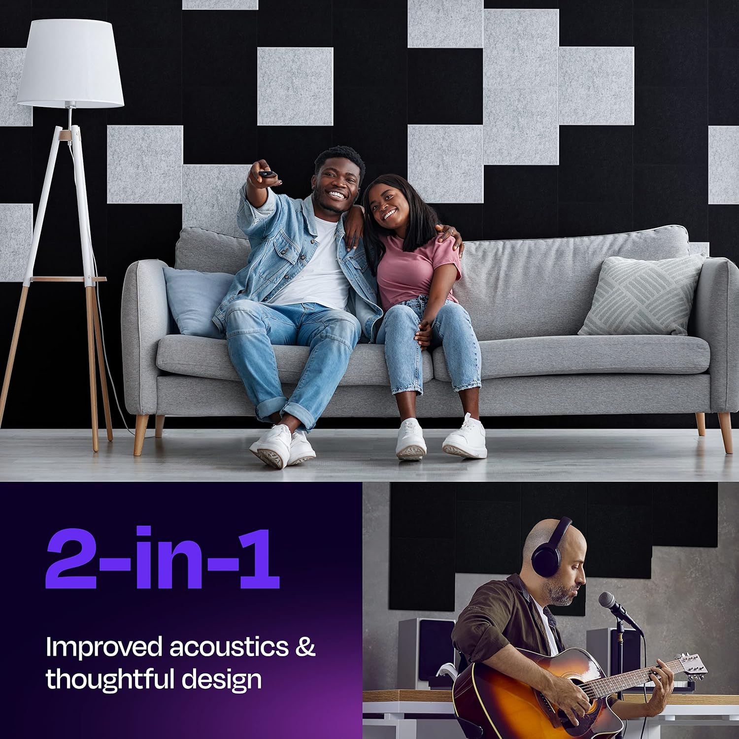 - 【HIGH DENSITY ACOUSTIC PANELS】: Improve sound quality and reduce echoes & reverb at your home, office, podcast studio, conference room and more. Give your space what it's been asking for, with our beautiful sound absorbing panels and keep unwanted noises down to a minimum.