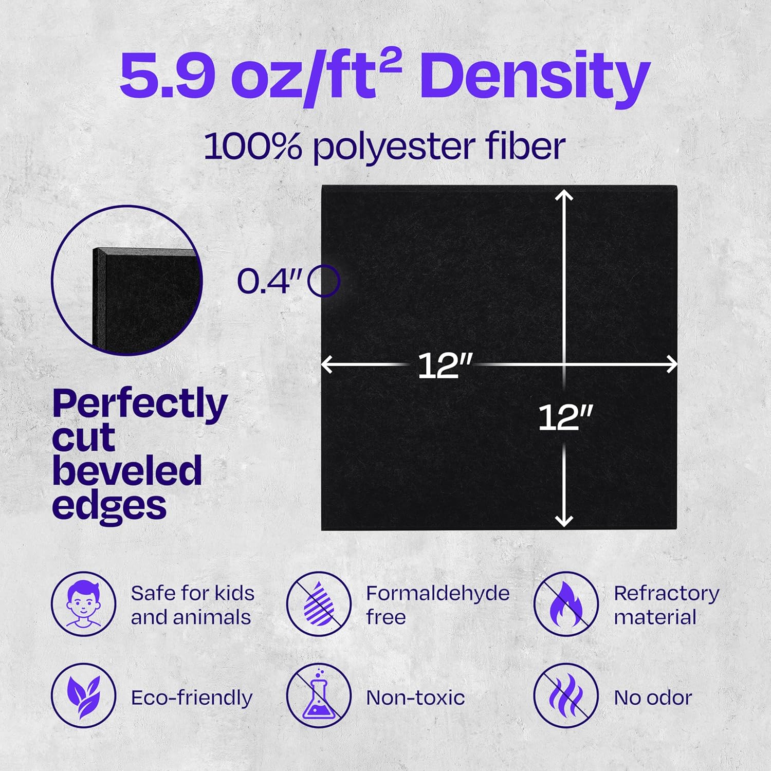 Acoustic Panels 12-Pack Soundproof Wall Panels 12"X12"X0.4" Sound Panels High Density Sound Dampening Panels - [Deep Black Square]