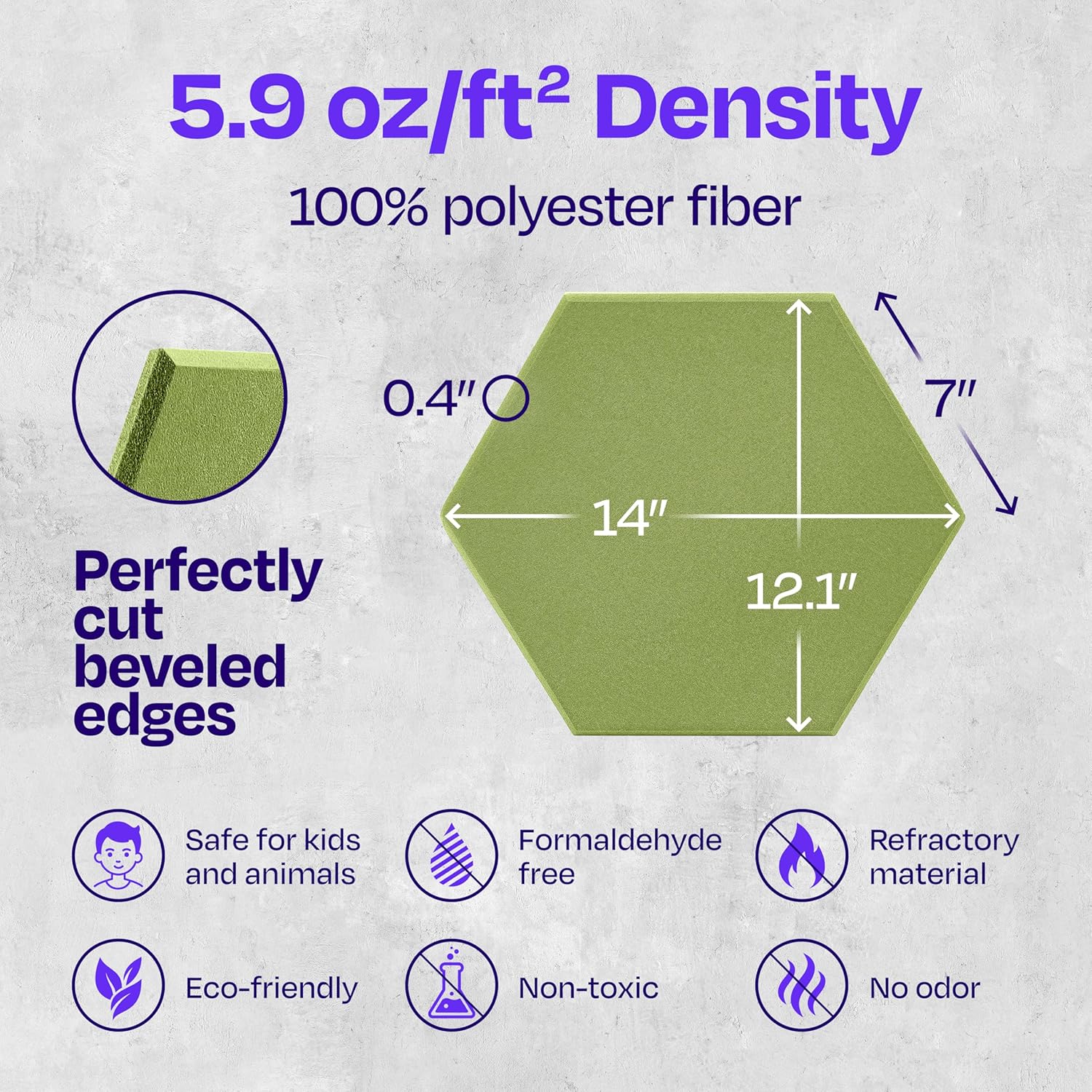 Acoustic Panels - 12-Pack Soundproof Wall Panels, 14"X12.1"X0.4", High Density Sound Dampening - Gin Green Hexagon