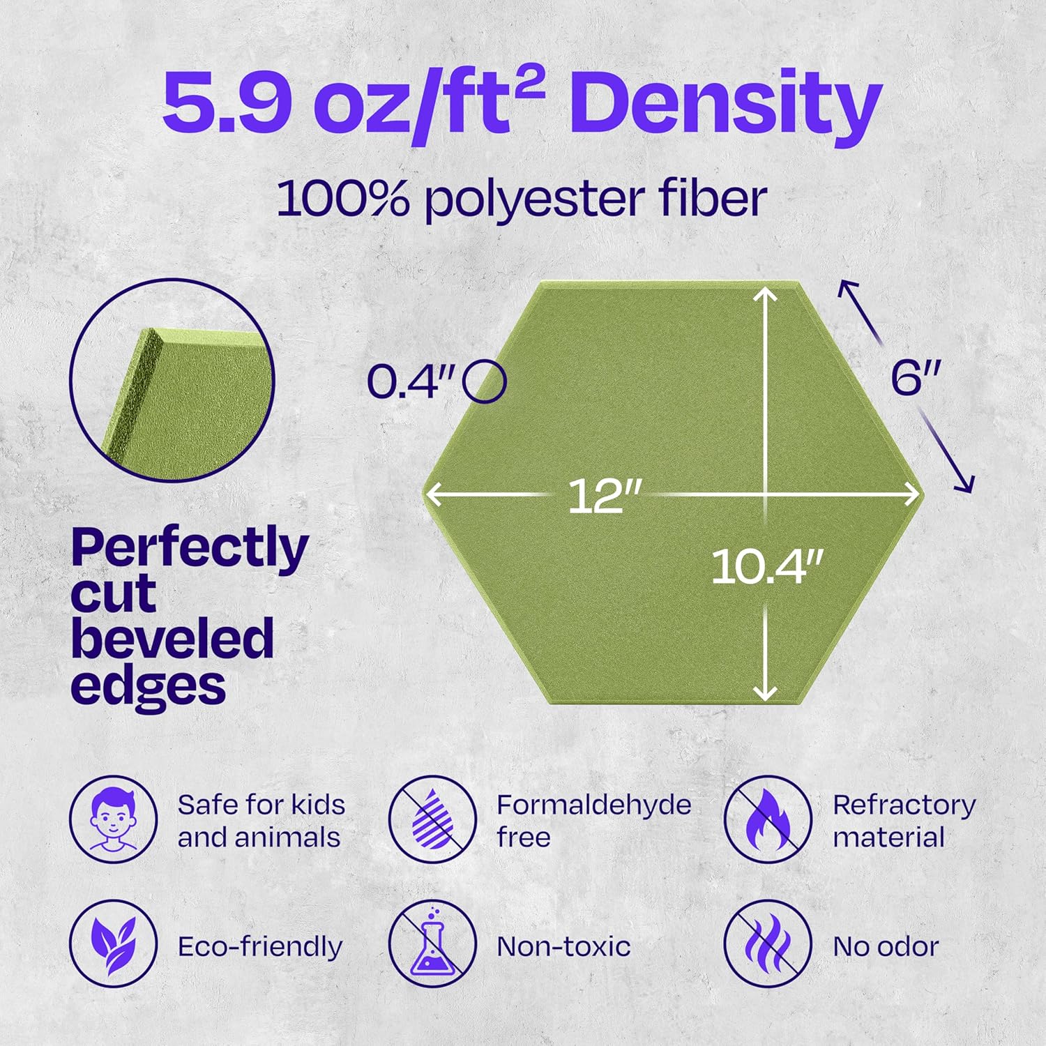 Acoustic Panels 12-Pack - 12"X10.4"X0.4" Soundproof Wall Panels - High Density Sound Dampening - Gin Green Hexagon