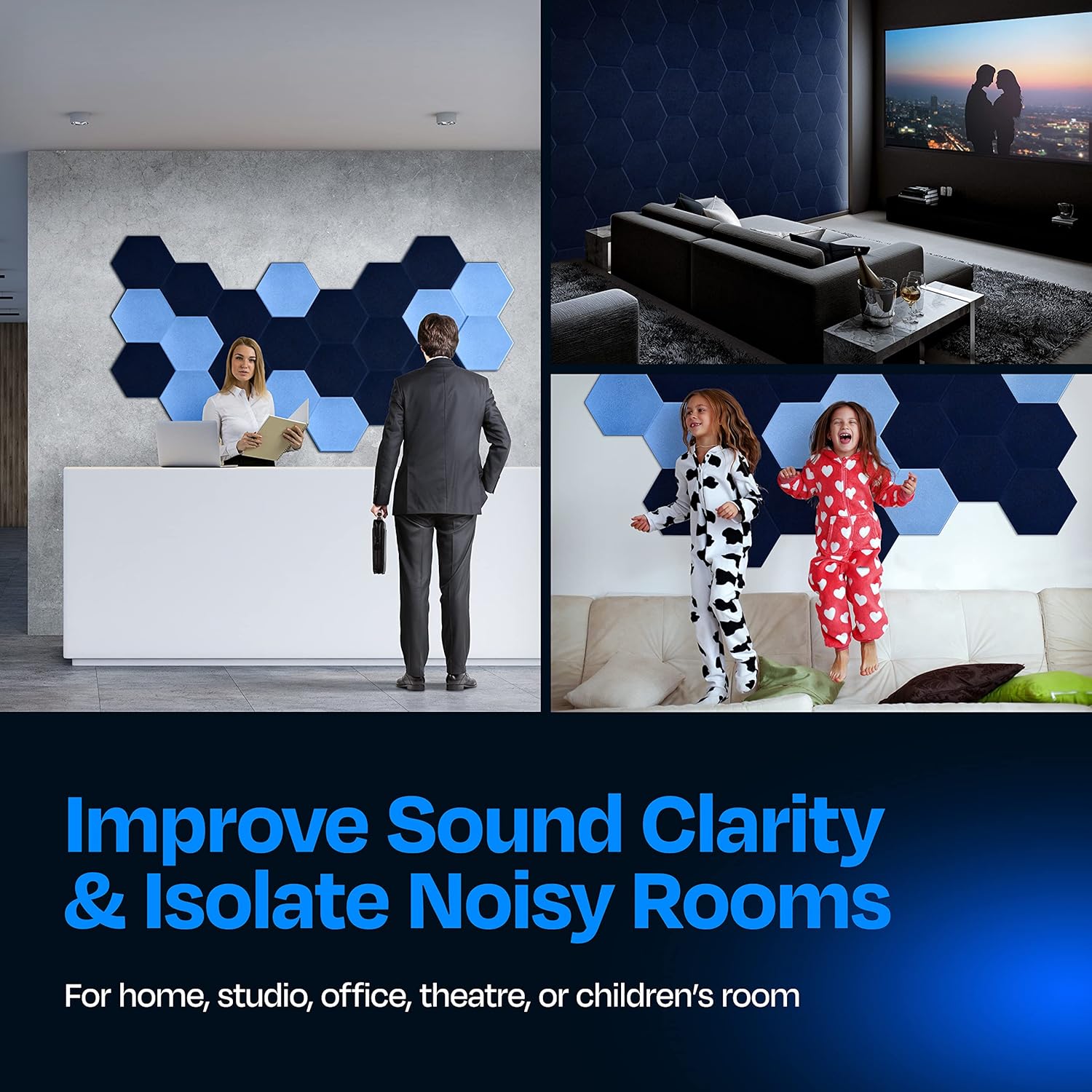 Acoustic Panels 12-Pack Soundproof Wall Panels 14"X12.1"X0.4" Sound Panels High Density Sound Dampening Panels - [Denim Blue Hexagon]